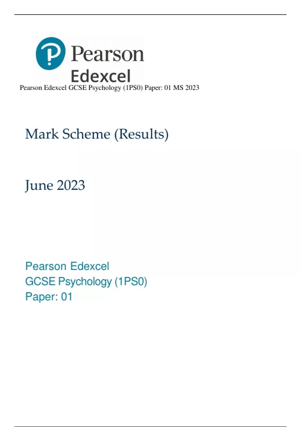 Pearson Edexcel GCSE Psychology (1PS0) Paper: 01 MS 2023