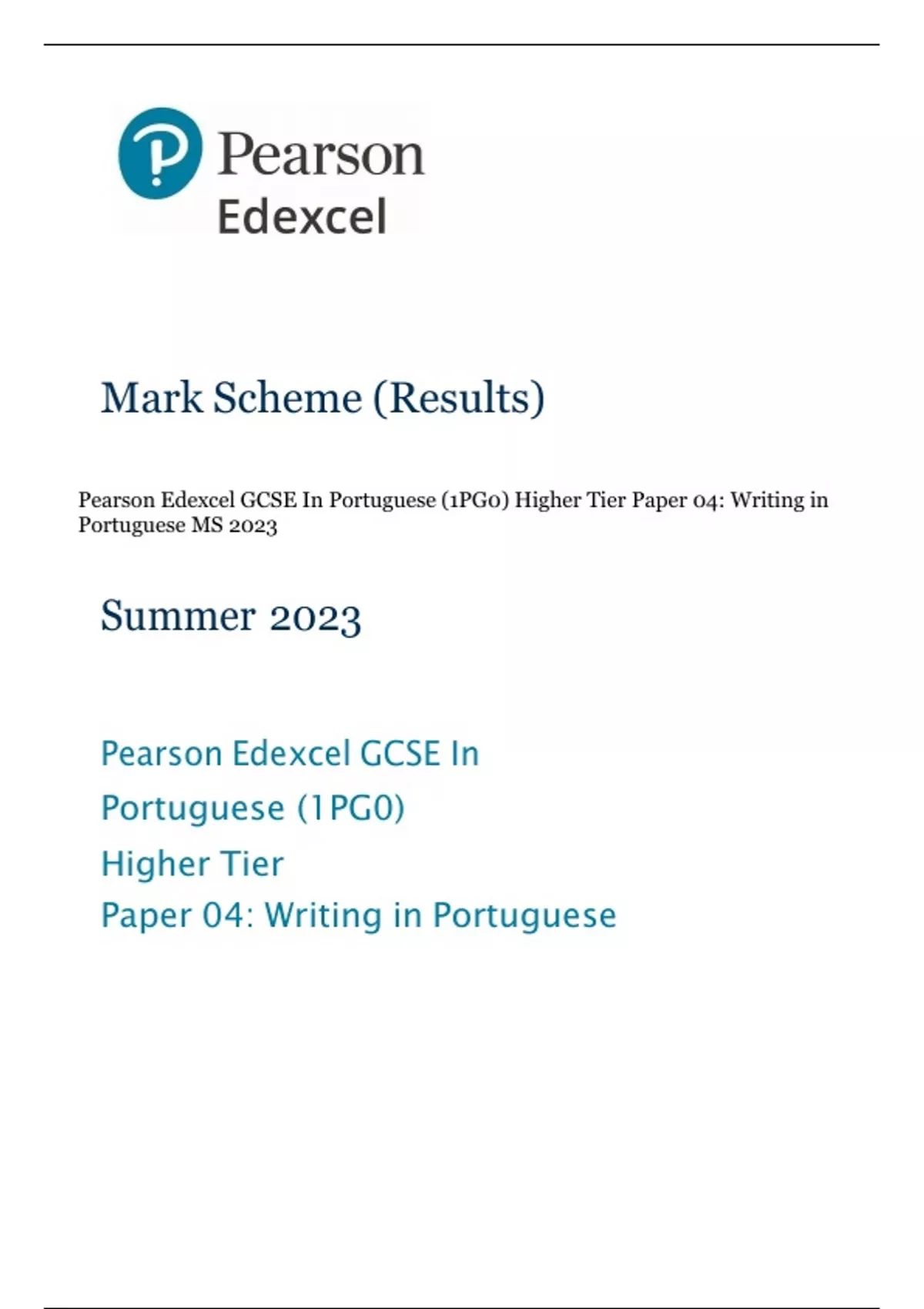 Pearson Edexcel GCSE In Portuguese (1PG0) Higher Tier Paper 04: Writing in Portuguese MS 2023