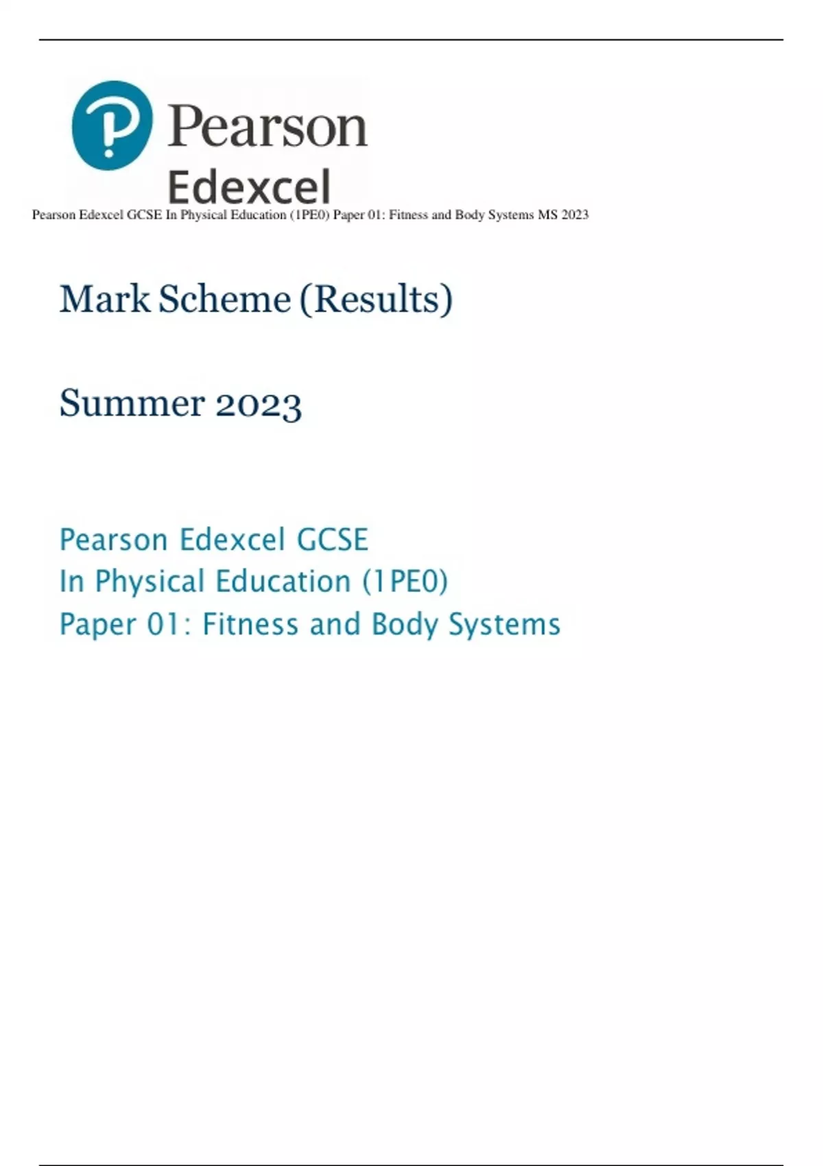 Pearson Edexcel GCSE In Physical Education (1PE0) Paper 01: Fitness and Body Systems MS 2023