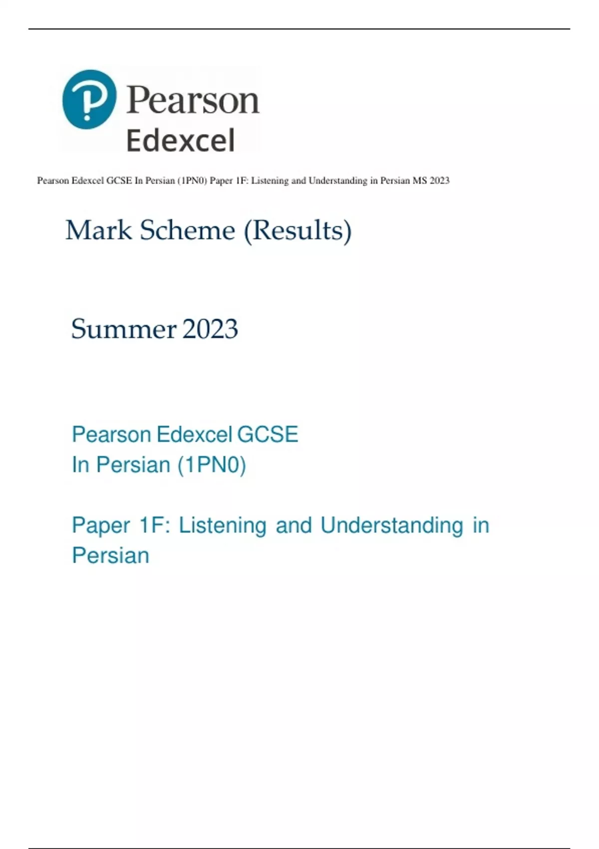 Pearson Edexcel GCSE In Persian (1PN0) Paper 1F: Listening and Understanding in Persian MS 2023