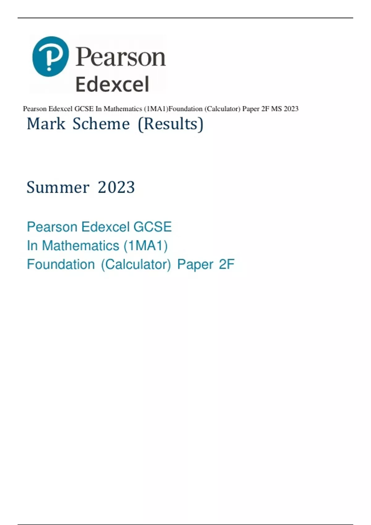 Pearson Edexcel GCSE In Mathematics (1MA1)Foundation (Calculator) Paper 2F MS 2023
