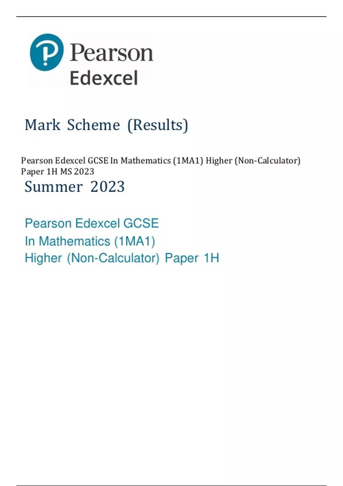 Pearson Edexcel GCSE In Mathematics (1MA1) Higher (Non-Calculator)