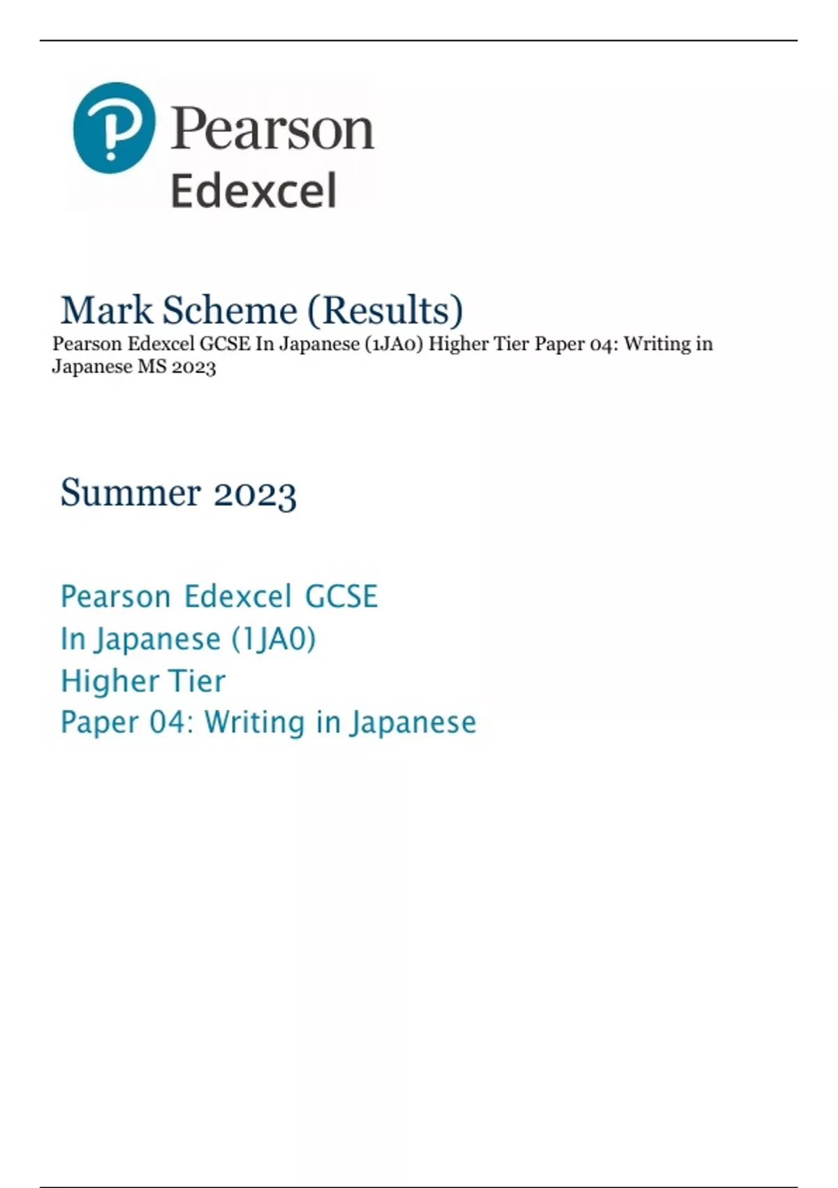 Pearson Edexcel GCSE In Japanese (1JA0) Higher Tier Paper 04: Writing in