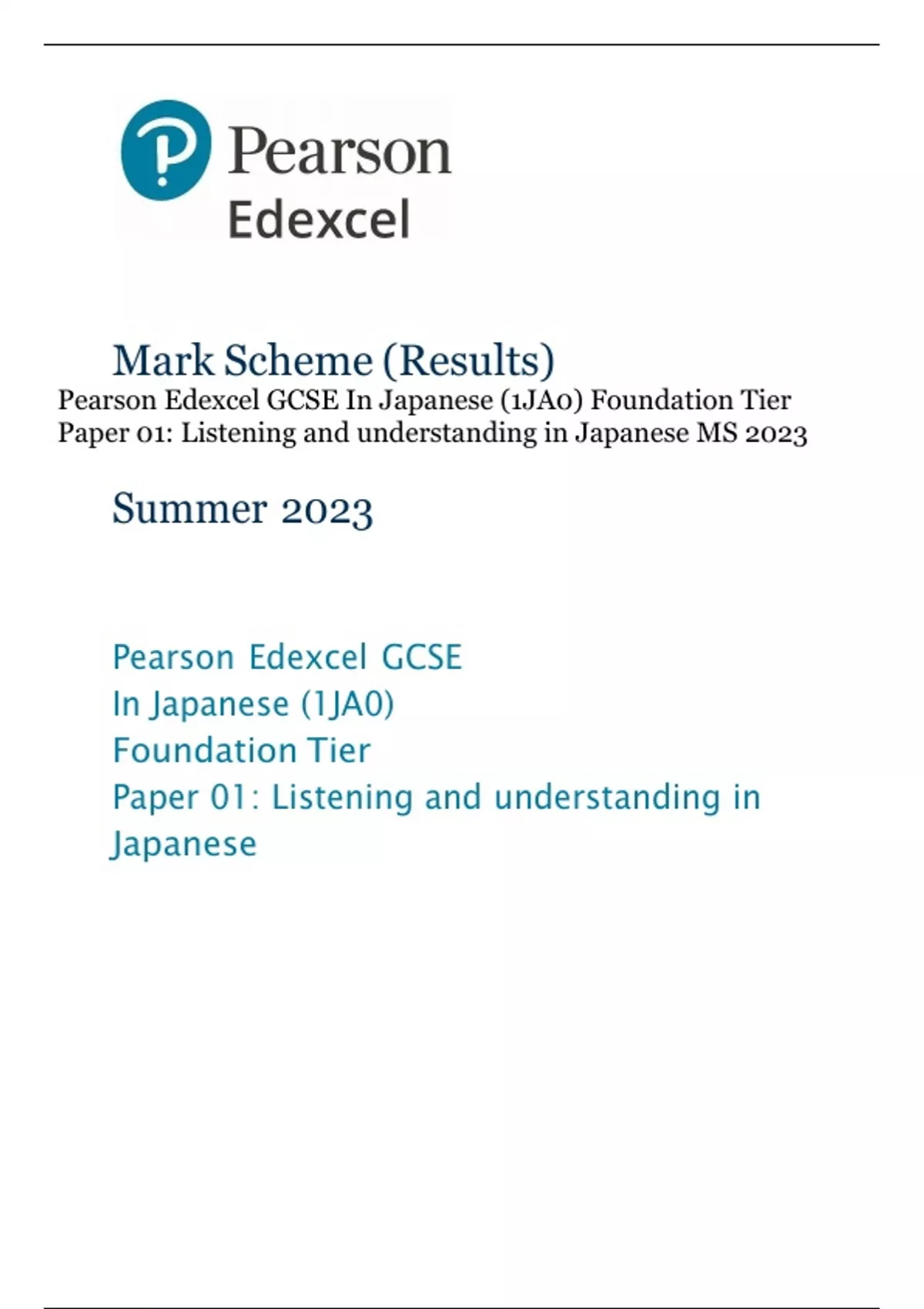 Pearson Edexcel GCSE In Japanese (1JA0) Foundation Tier Paper 01: Listening and understanding in Japanese MS 2023
