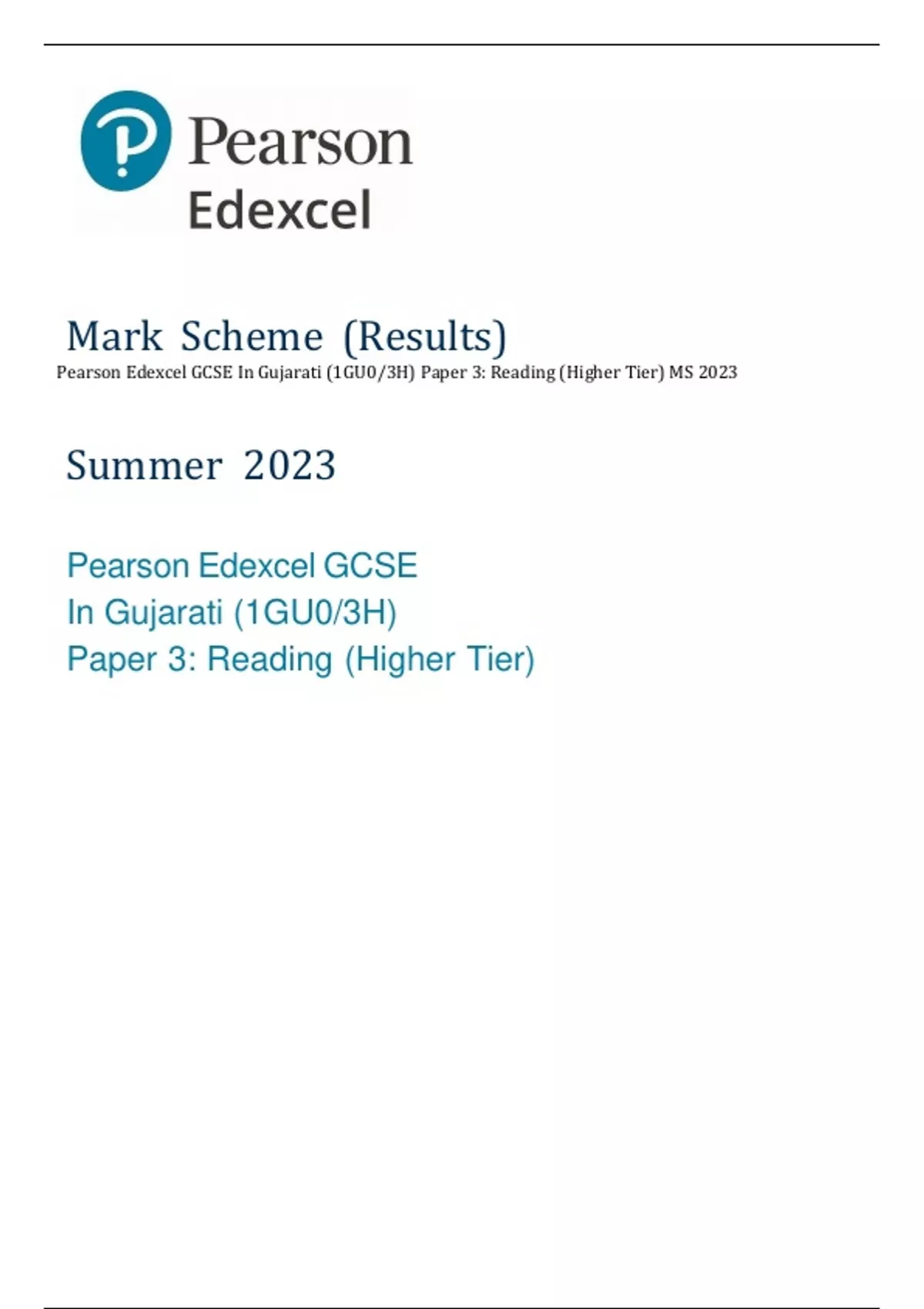 Pearson Edexcel GCSE In Gujarati (1GU0/3H) Paper 3: Reading (Higher Tier) MS 2023