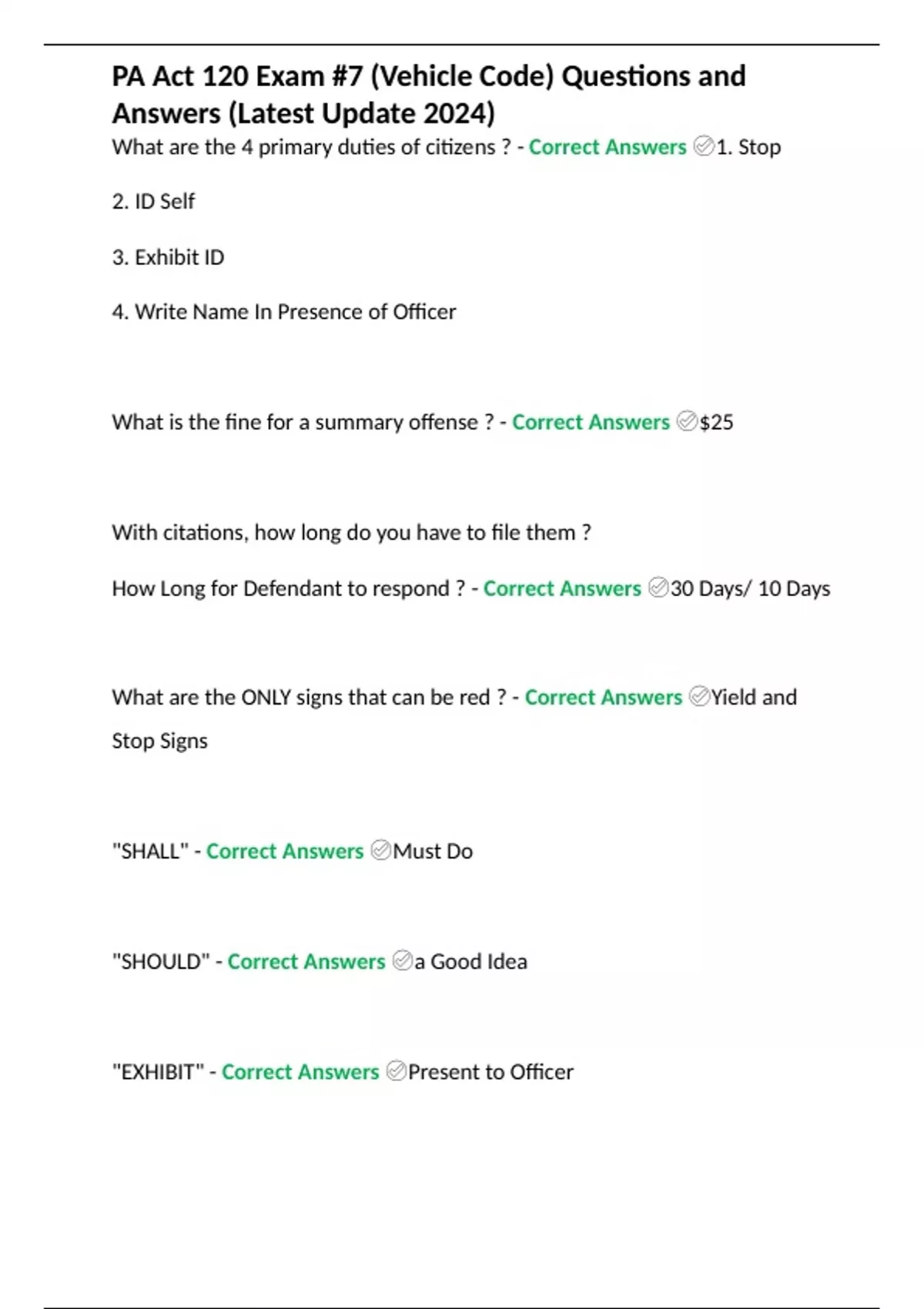 PA Act 120 Exam #7 (Vehicle Code) Questions and Answers (Latest Update 2024)PA Act 120 Exam #7 (Vehicle Code) Questions and Answers (Latest Update 2024)PA Act 120 Exam #7 (Vehicle Code) Questions and Answers (Latest Update 2024)