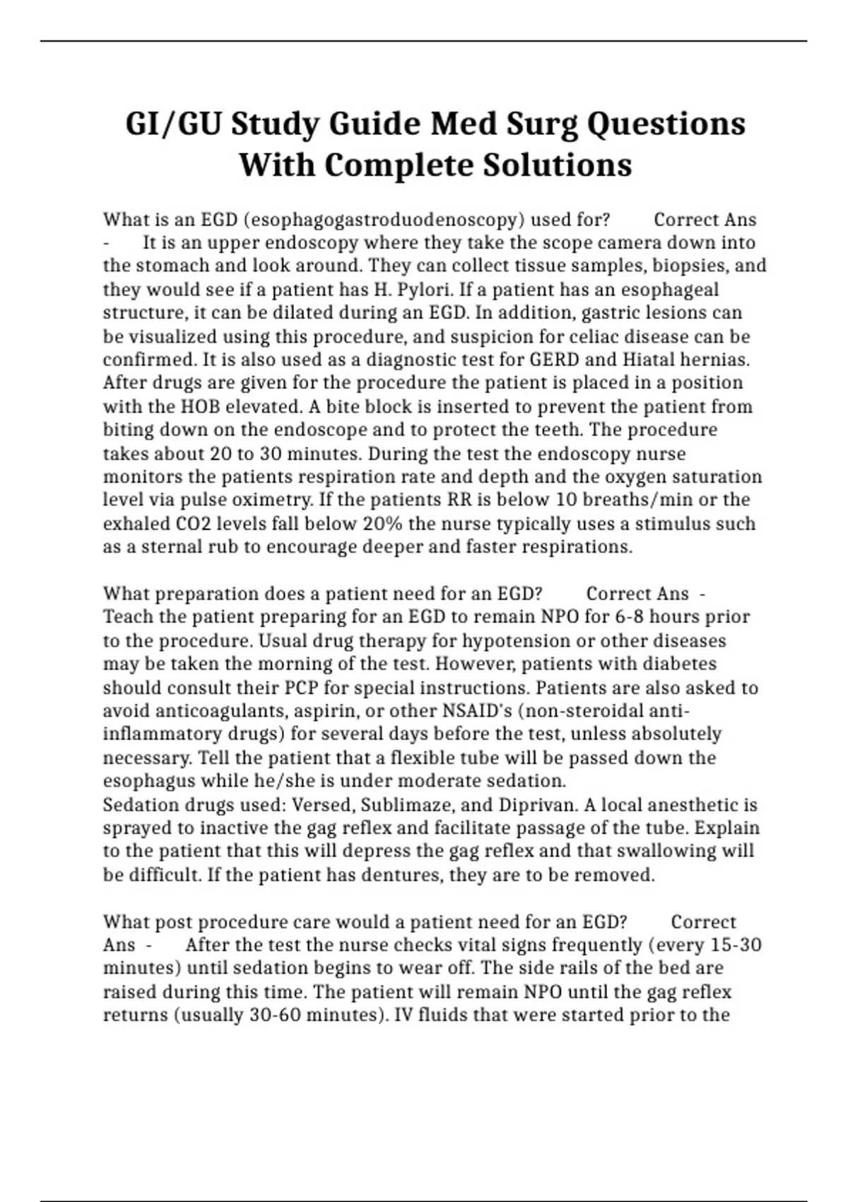 GI/GU Study Guide Med Surg Questions With Complete Solutions