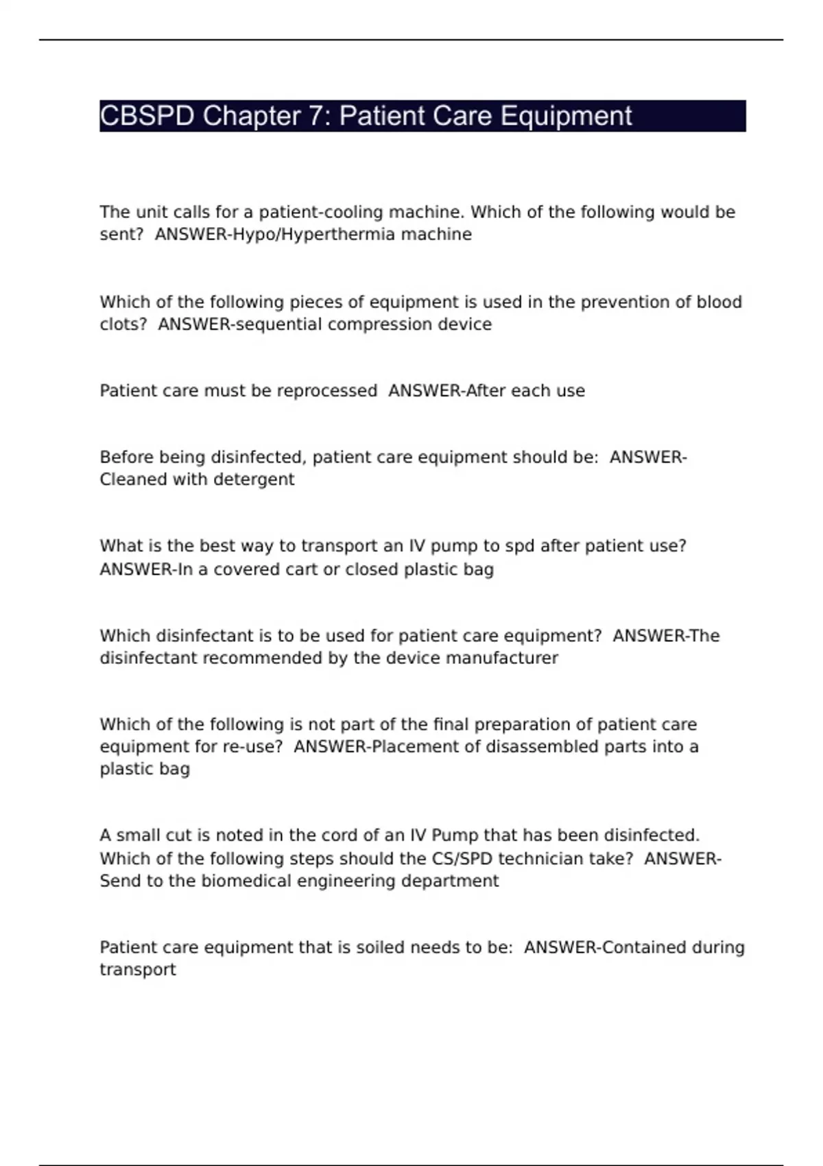 CBSPD Chapter 7: Patient Care Equipment|Questions with 100% Correct Answers | Verified | Updated 2024