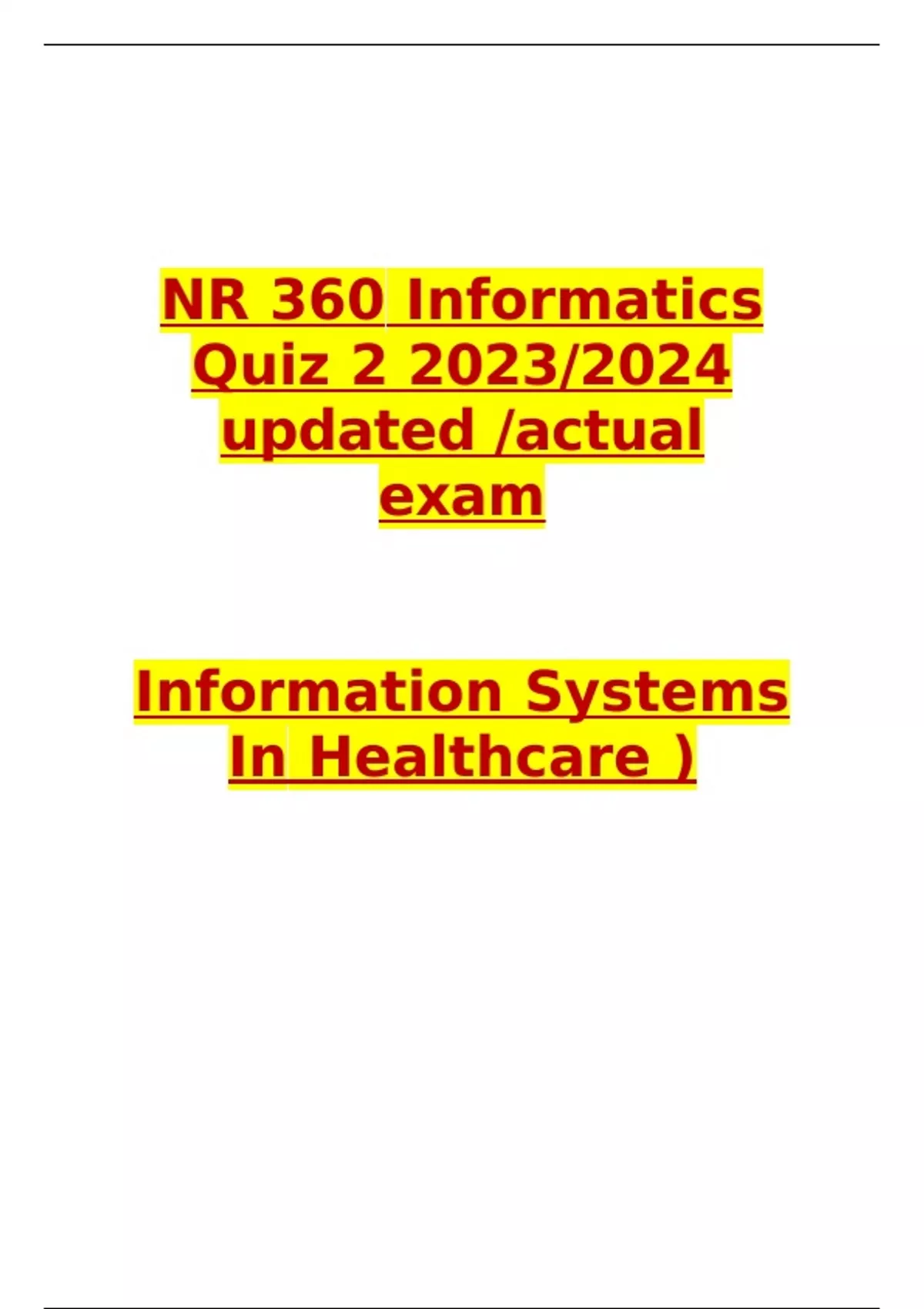 NR 360 Informatics Quiz 2 2023/2024 updated /actual exam