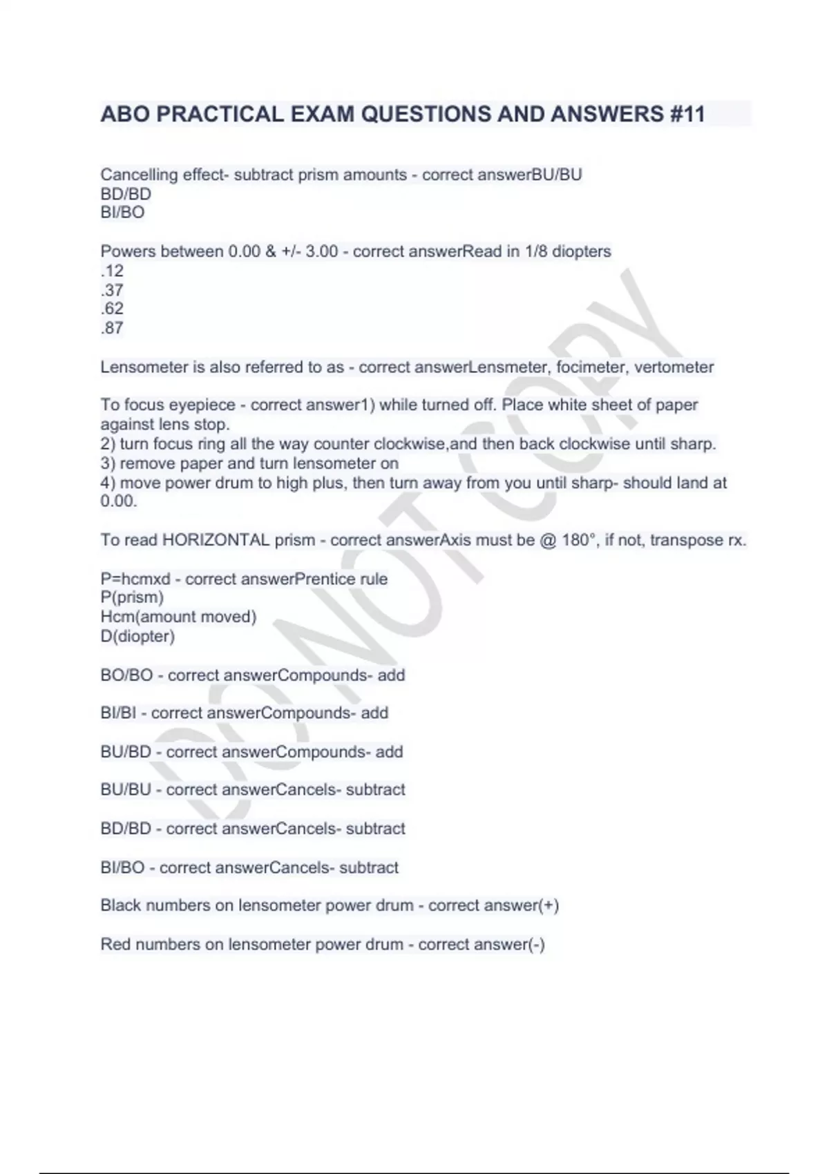 ABO PRACTICAL EXAM QUESTIONS AND ANSWERS #11