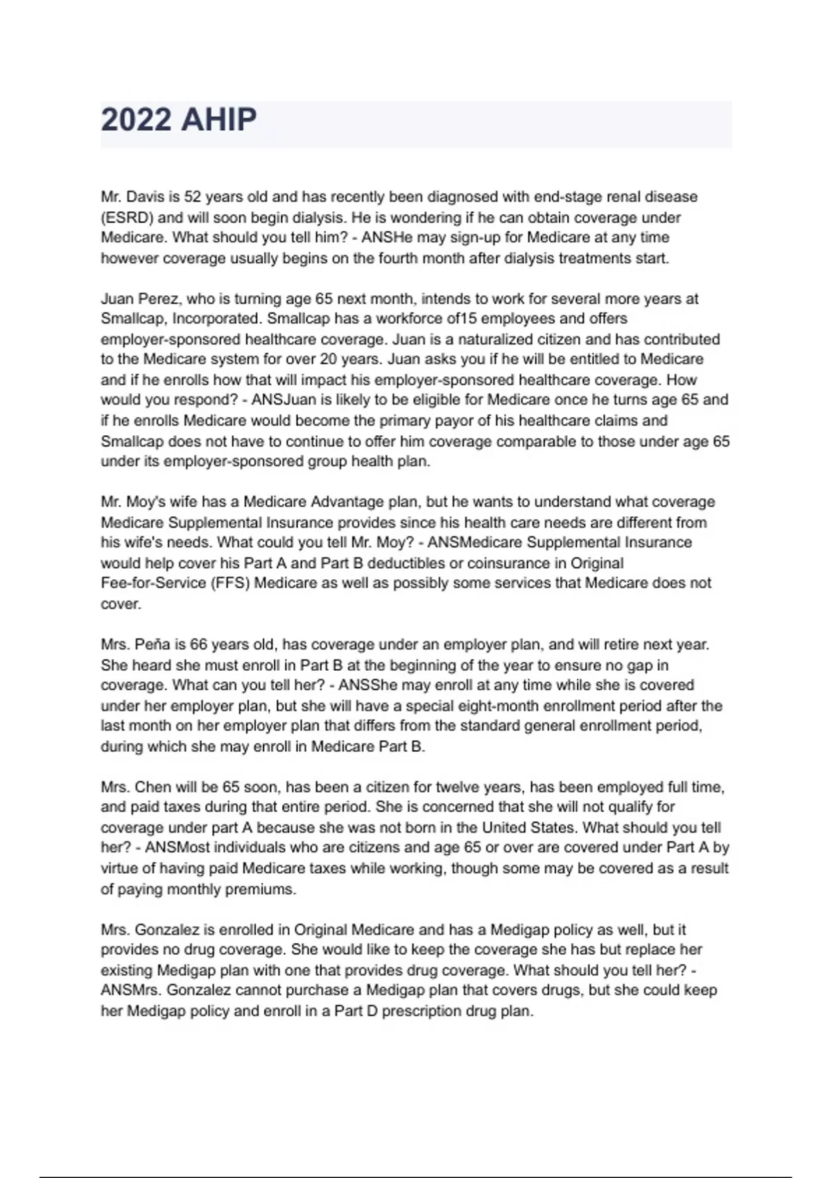 whether he can obtain coverage under Medicare. What should you tell him? - ANSAfter