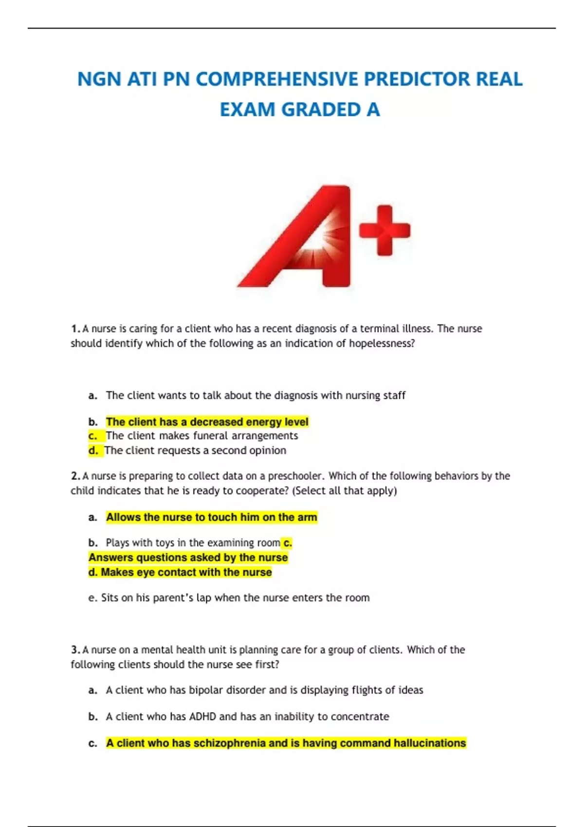 NGN ATI PN COMPREHENSIVE PREDICTOR REAL EXAM GRADED A