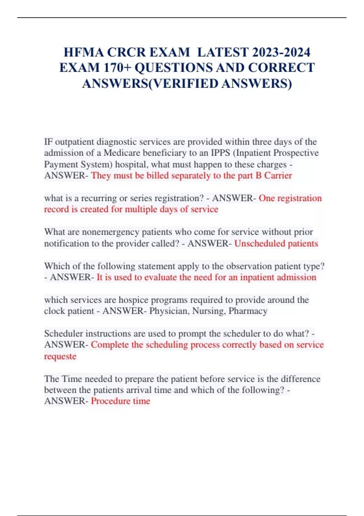 HFMA CRCR EXAM LATEST EXAM 170+ QUESTIONS AND CORRECT ANSWERS(VERIFIED ANSWERS)