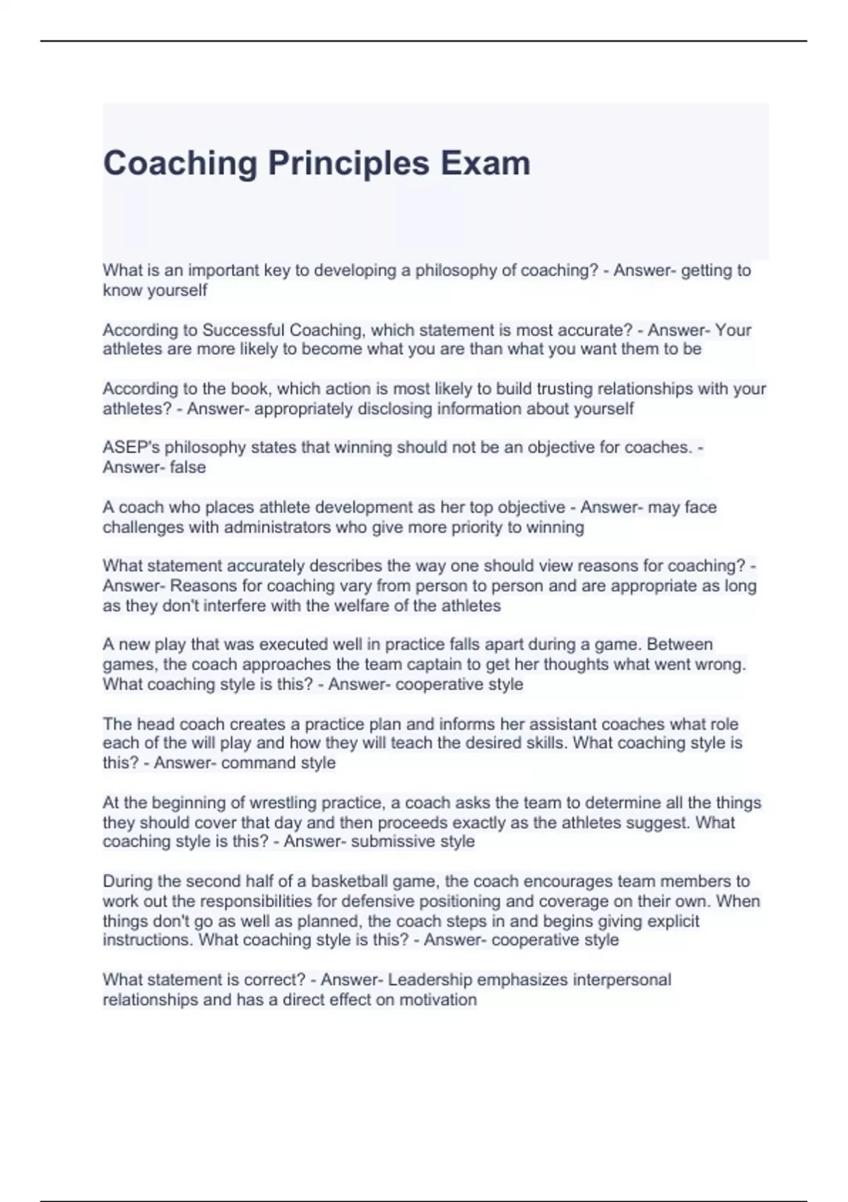 Exam of 16 pages for the course Coaching Principles at Coaching Principles (Coaching Principles)