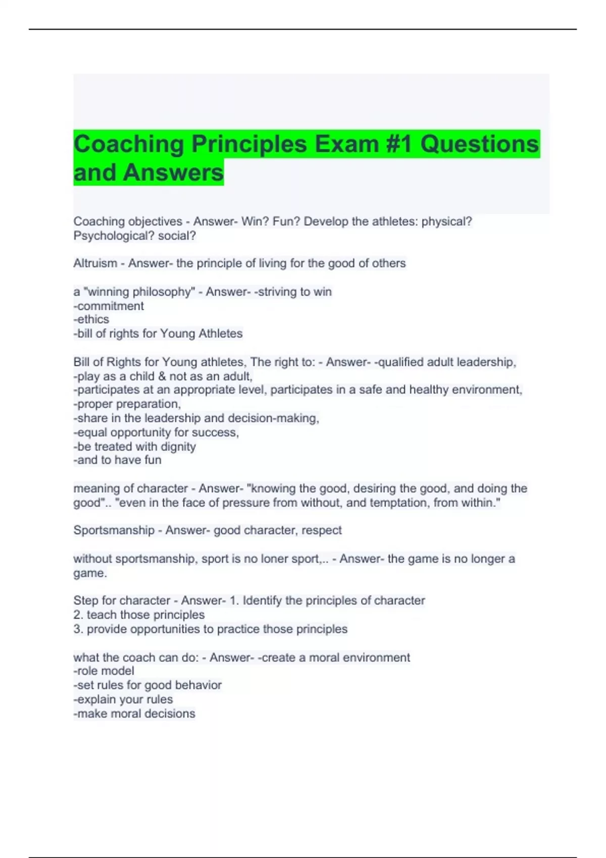 coaching principles exam 1 questions and answers