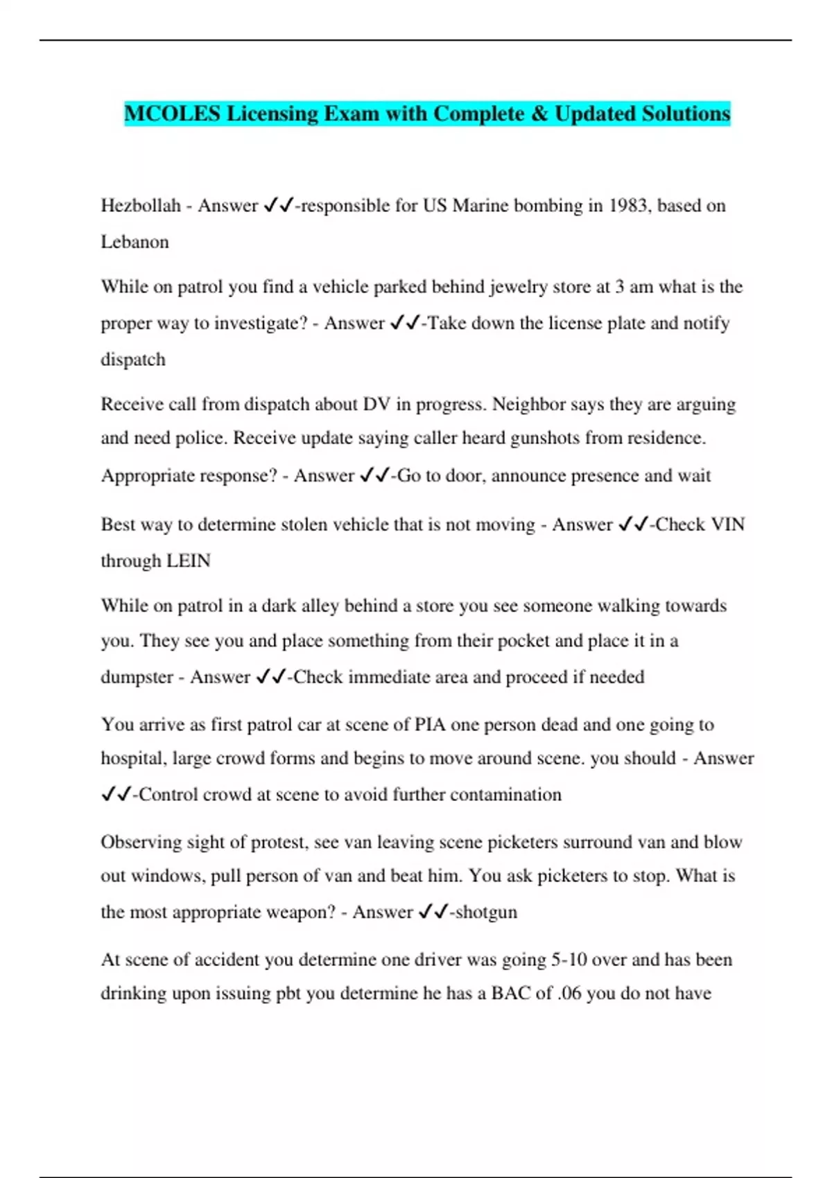 MCOLES Licensing Exam with Complete & Updated Solutions