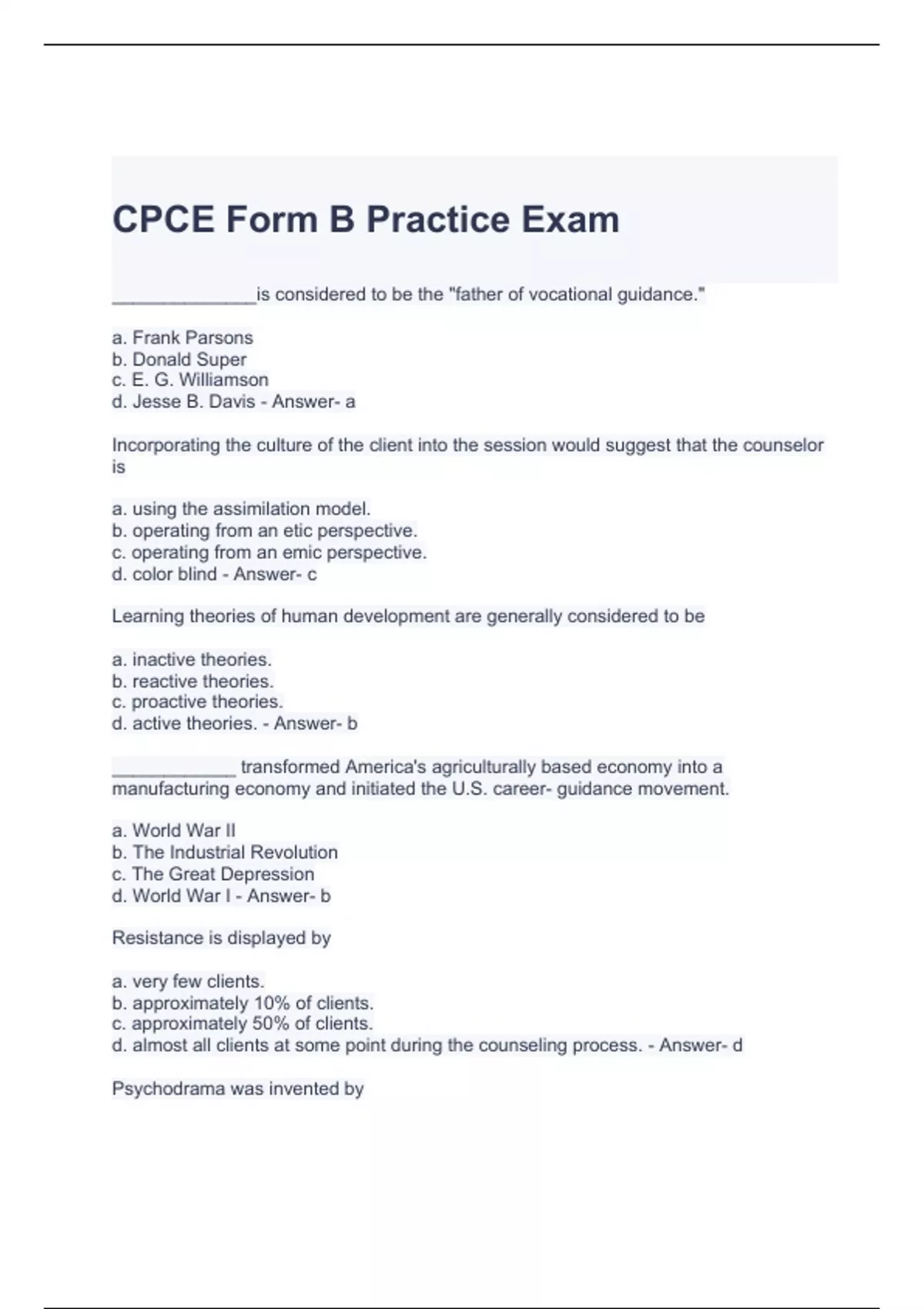 CPCE Form B Practice Exam Questions and Answers