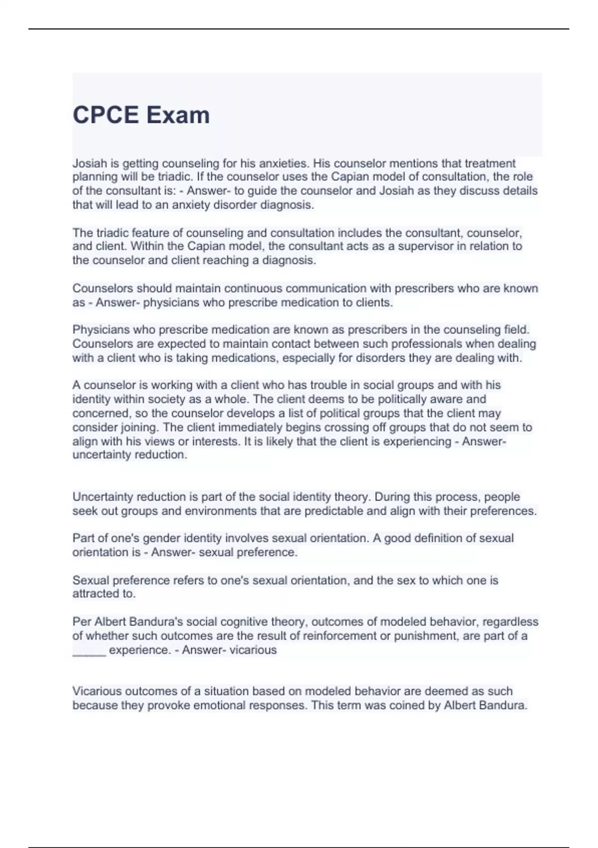 CPCE Exam with 100% correct Answers