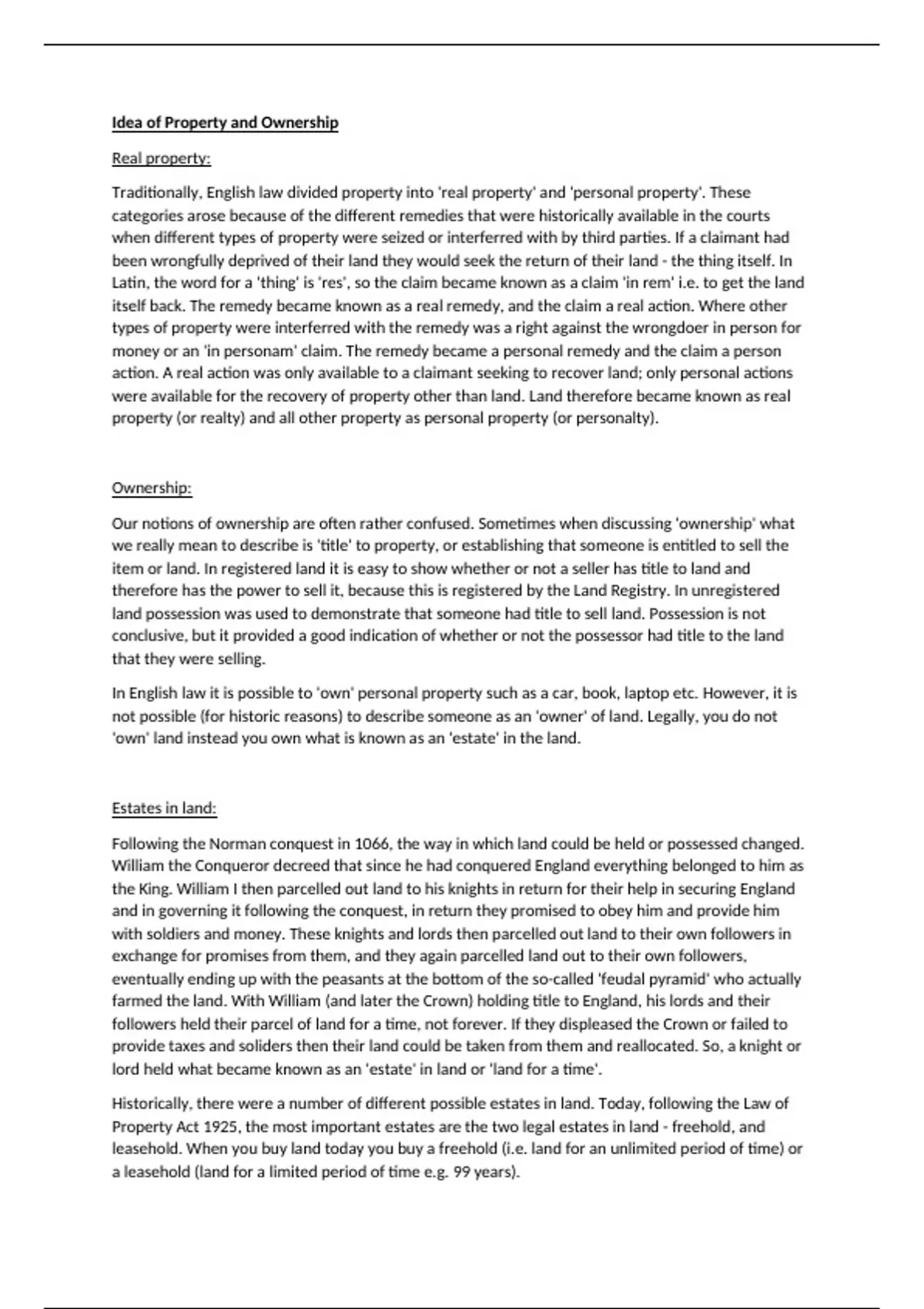 Property Act 1925, the most important estates are the two legal estates in land - freehold, and