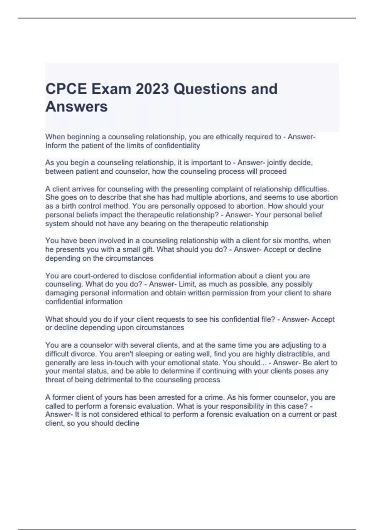 CPCE Exam Questions and Answers