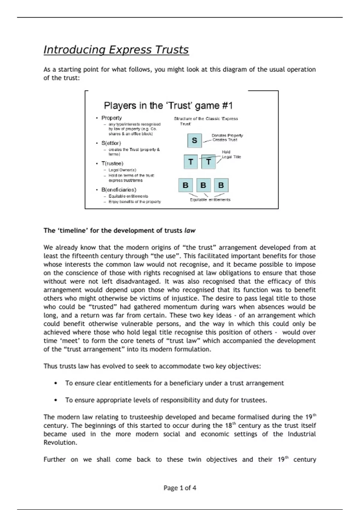 The ‘timeline’ for the development of trusts law