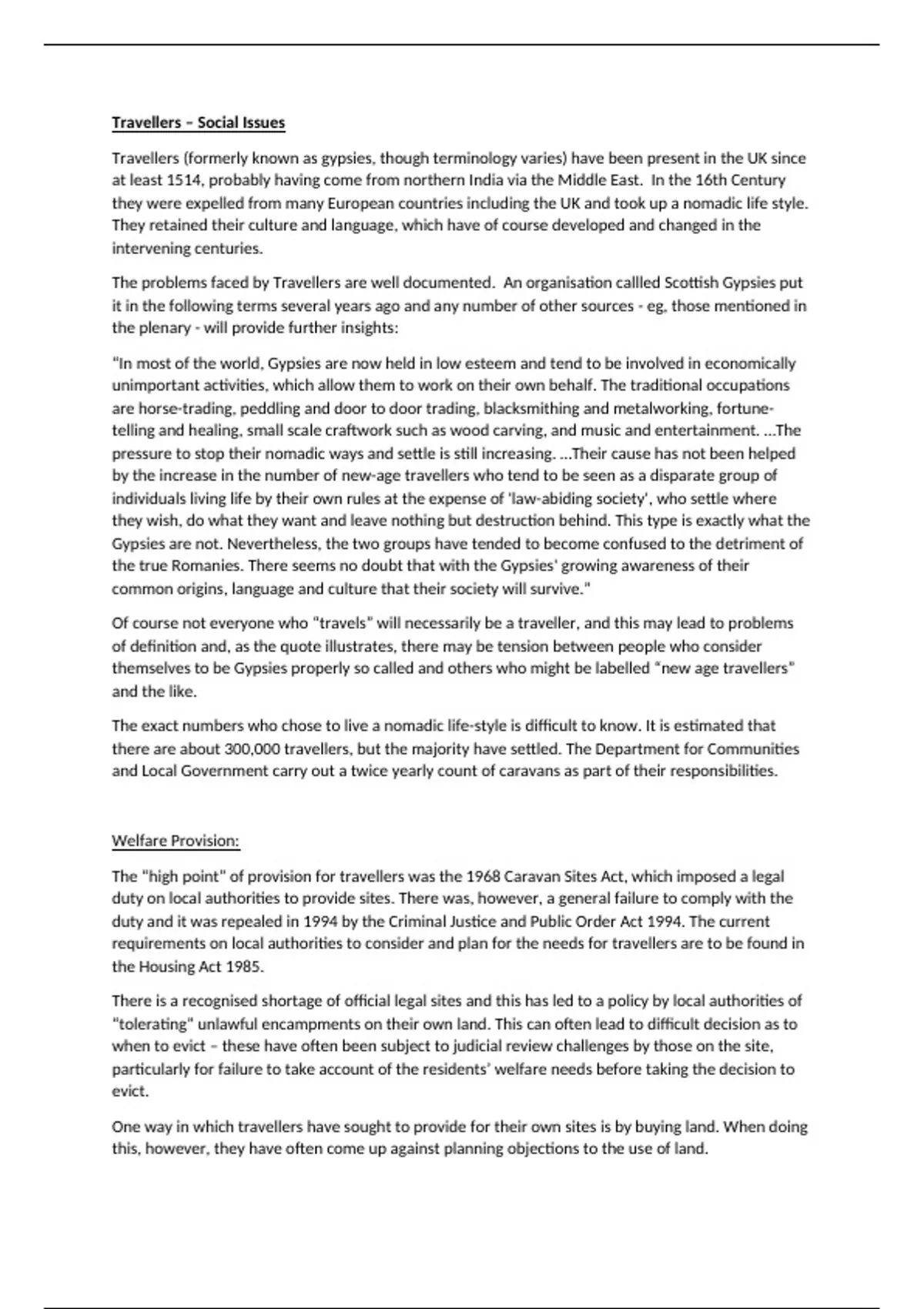 Summary notes looking at Travellers within Public Law