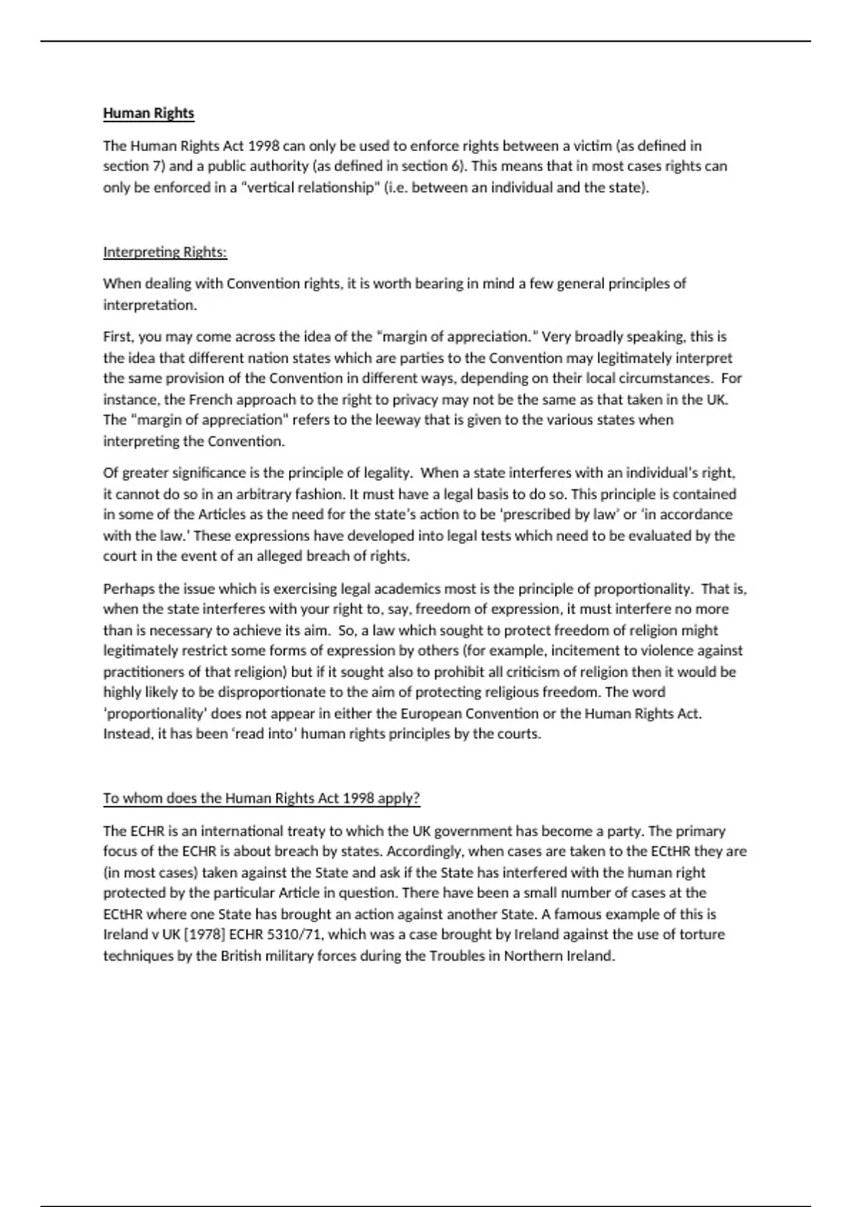 Summary notes on human rights law within public law