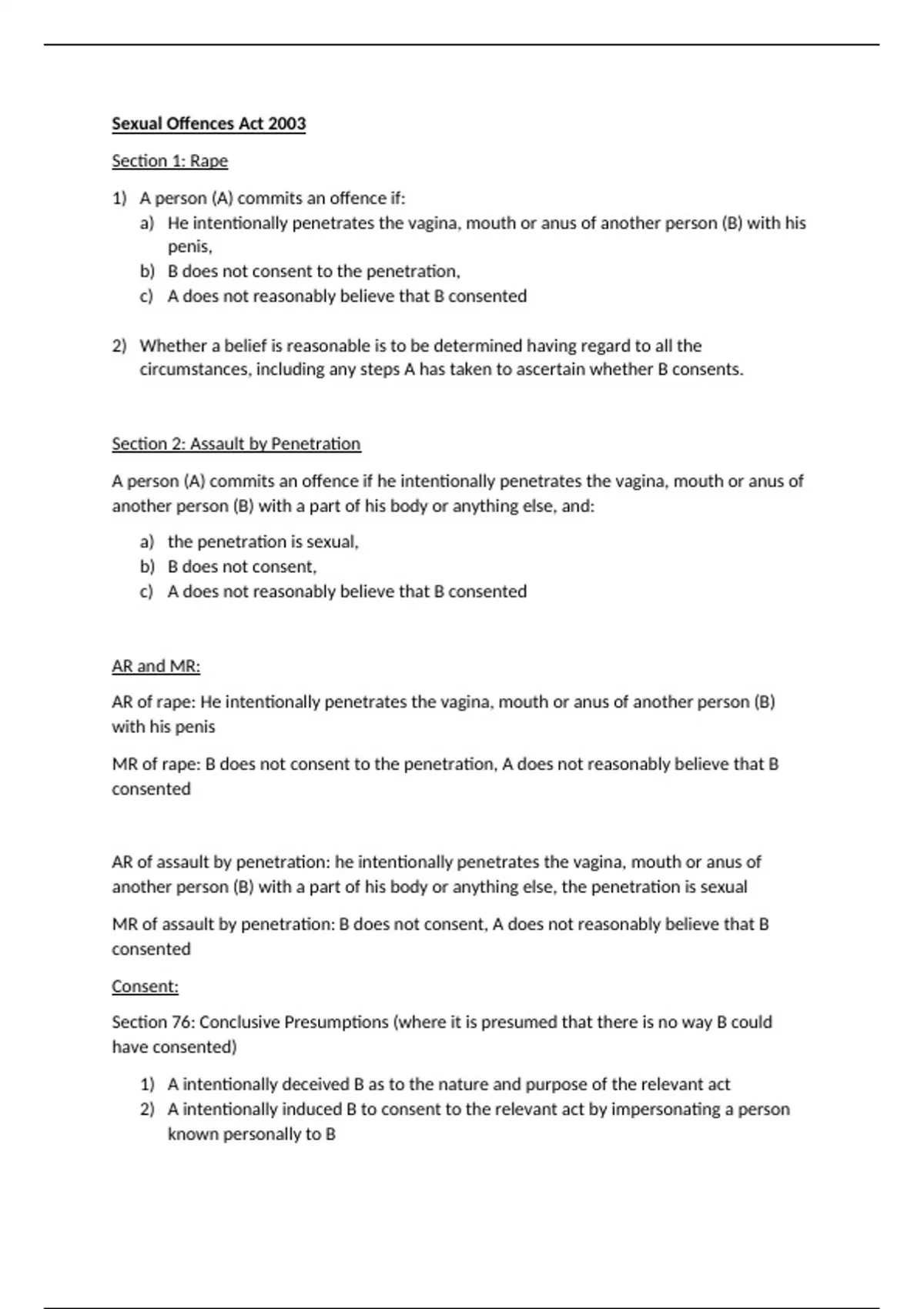 Section 1: Rape