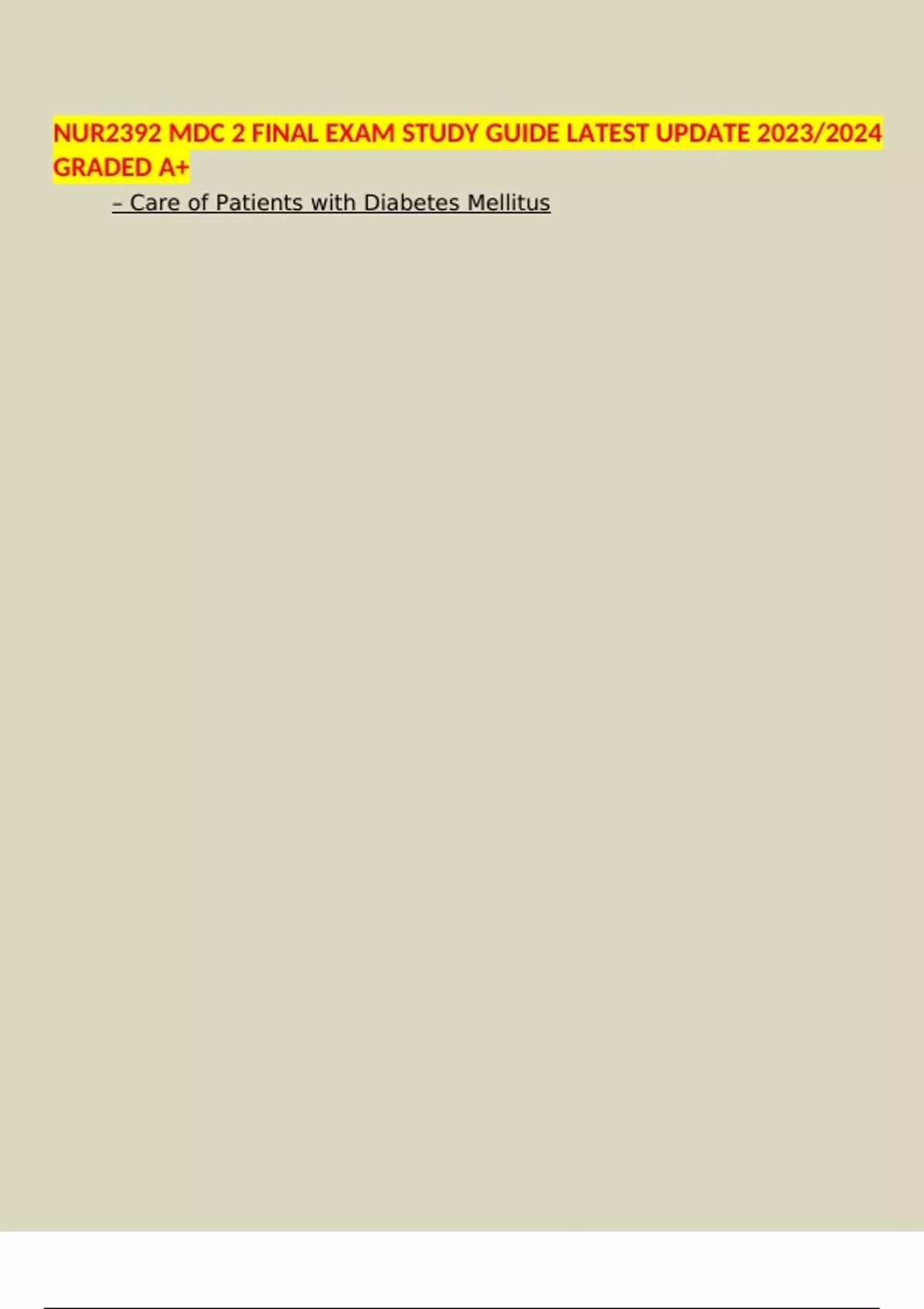 NUR2392 MDC 2 FINAL EXAM STUDY GUIDE LATEST UPDATE 2023/2024 GRADED A+