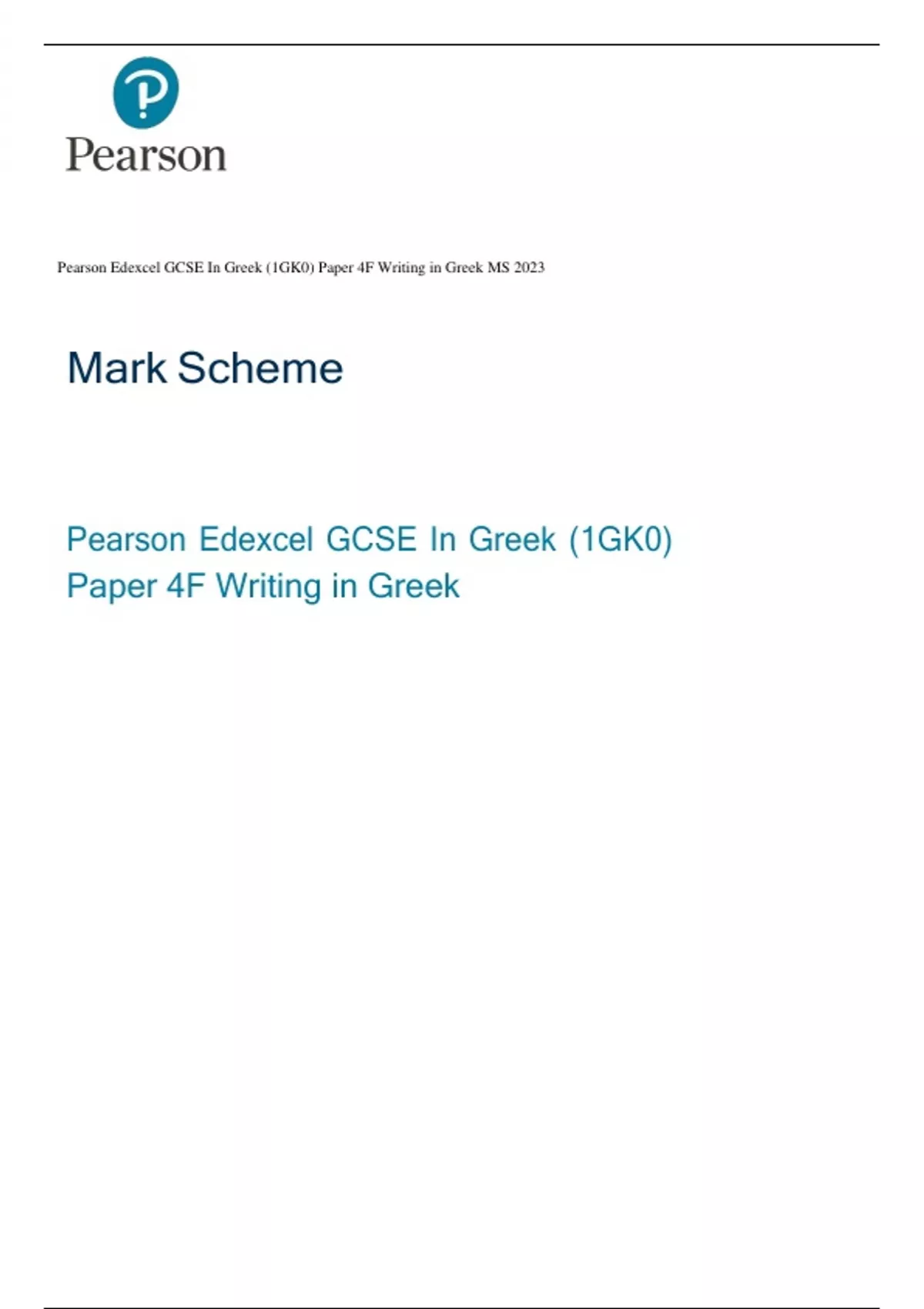Pearson Edexcel GCSE In Greek (1GK0) Paper 4F Writing in Greek MS 2023