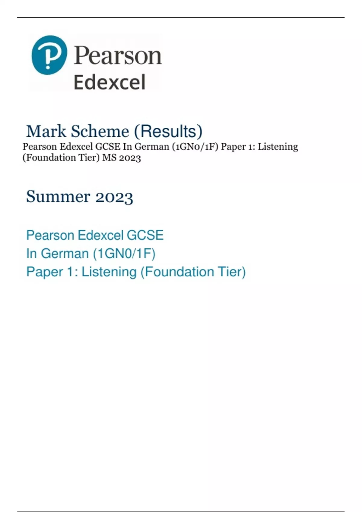 Pearson Edexcel GCSE In German (1GN0/1F) Paper 1: Listening