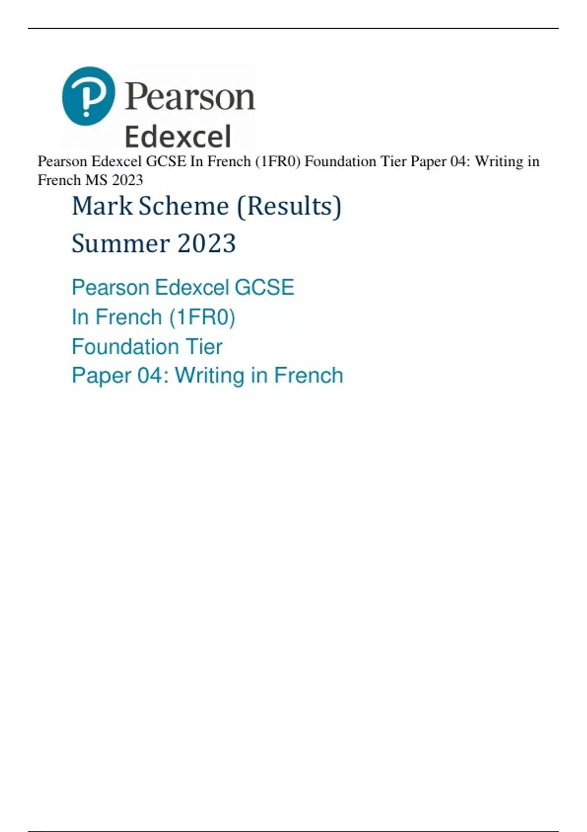 Pearson Edexcel GCSE In French (1FR0) Foundation Tier Paper 04: Writing in