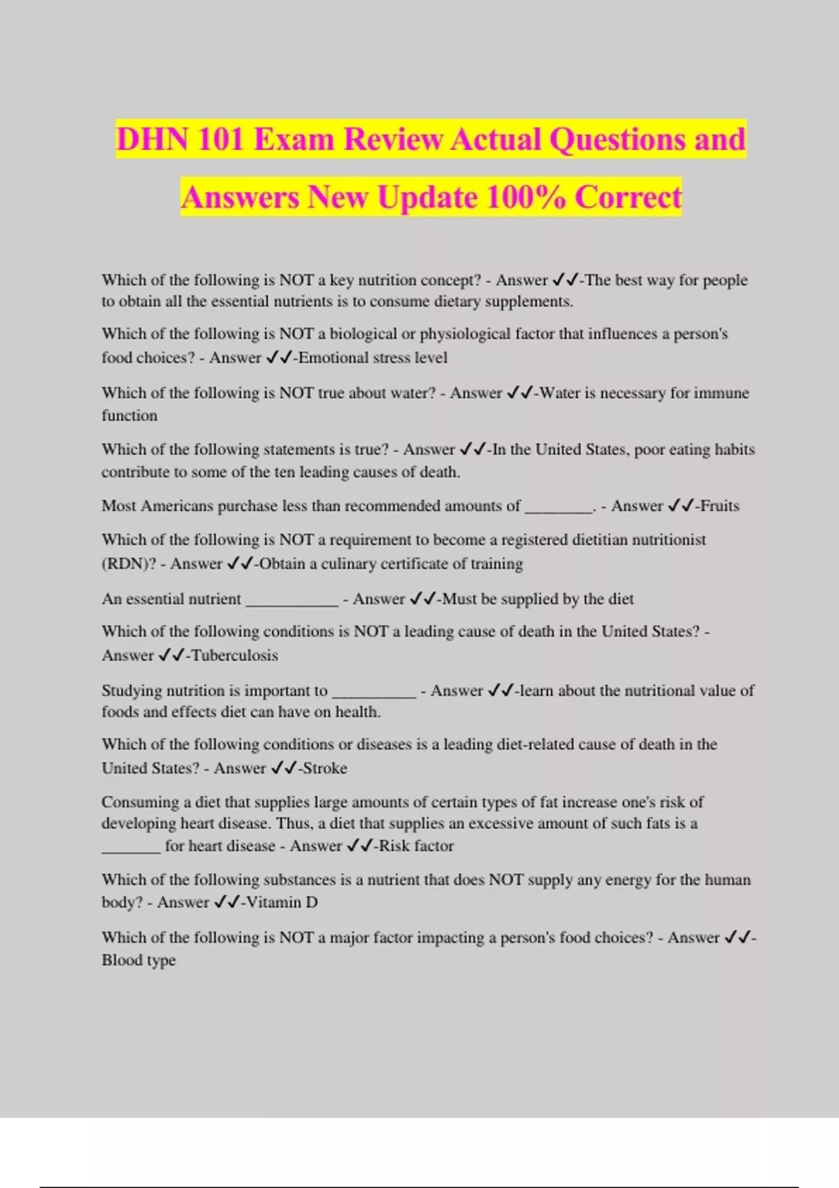 DHN 101 Exam Review Actual Questions and Answers New Update 100% Correct