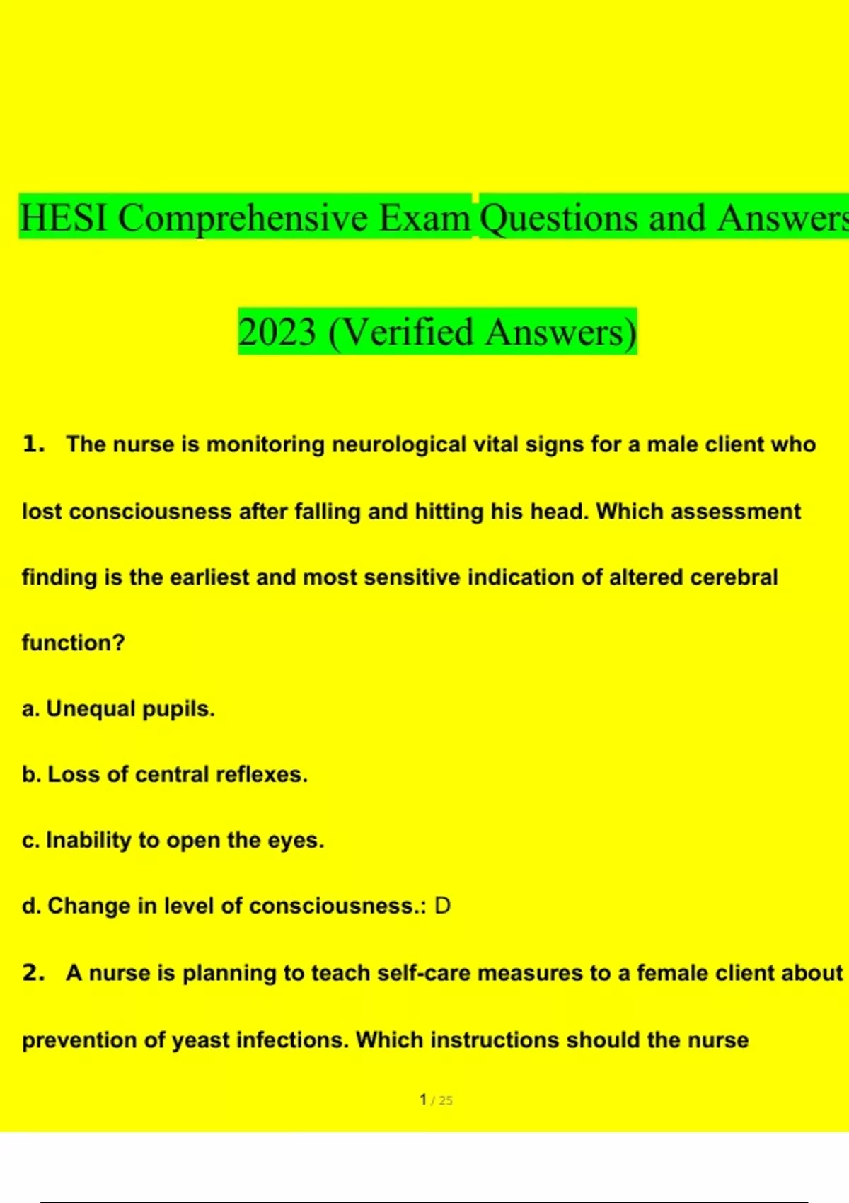 HESI Comprehensive Exam Questions and Answers 100% Verified
