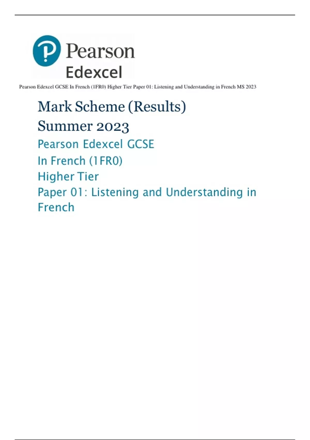 Pearson Edexcel GCSE In French (1FR0) Higher Tier Paper 01: Listening and Understanding in French MS 2023