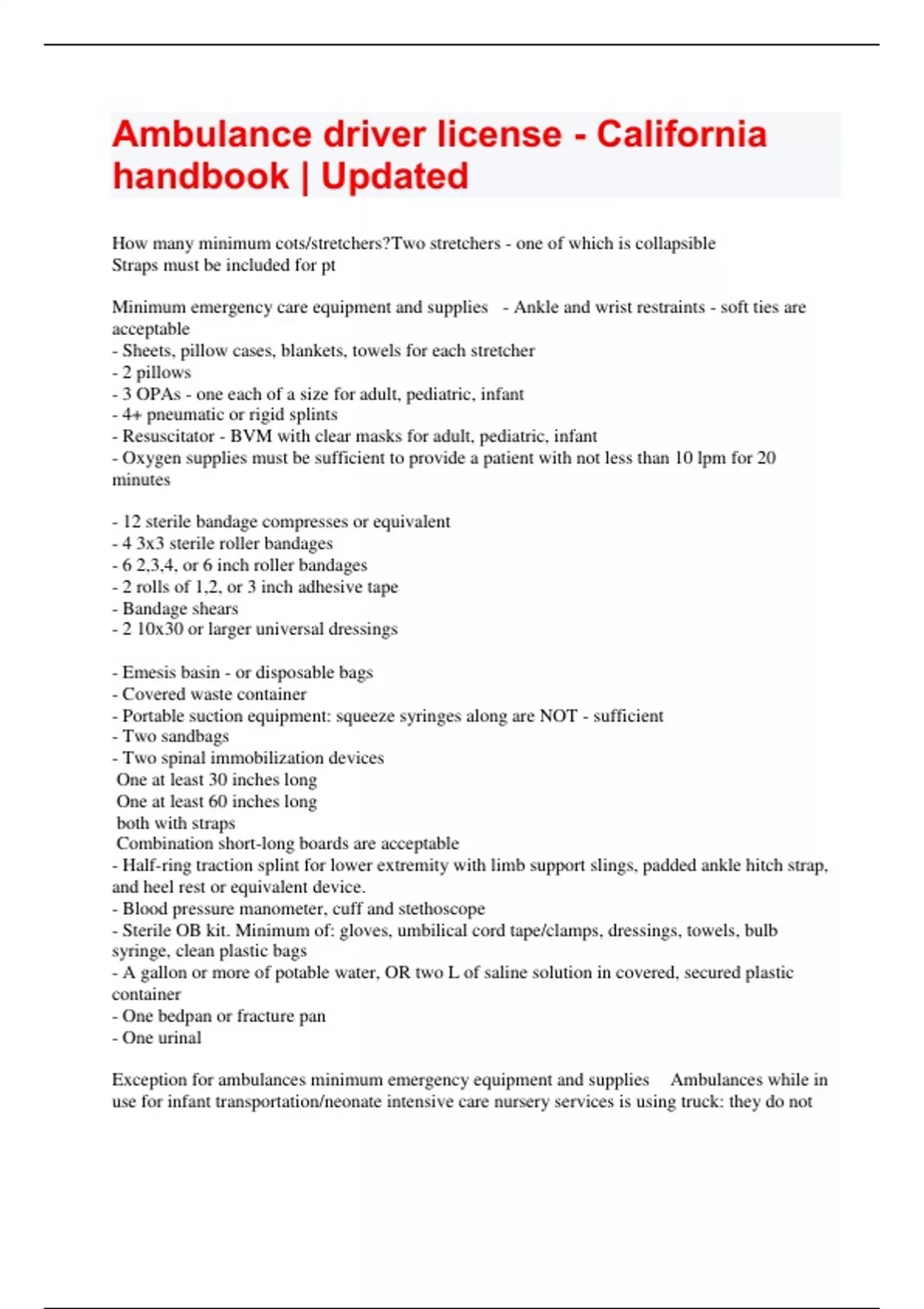- Ambulance driver license - California handbook