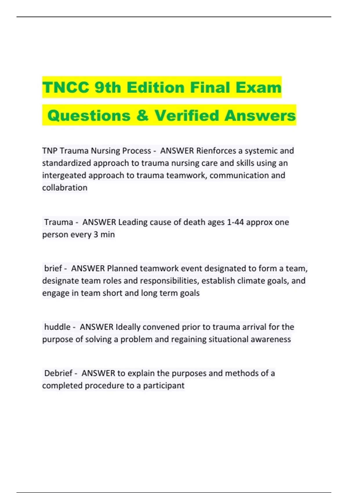 - TNCC 9th Edition Fina Exa Questi & Verified A