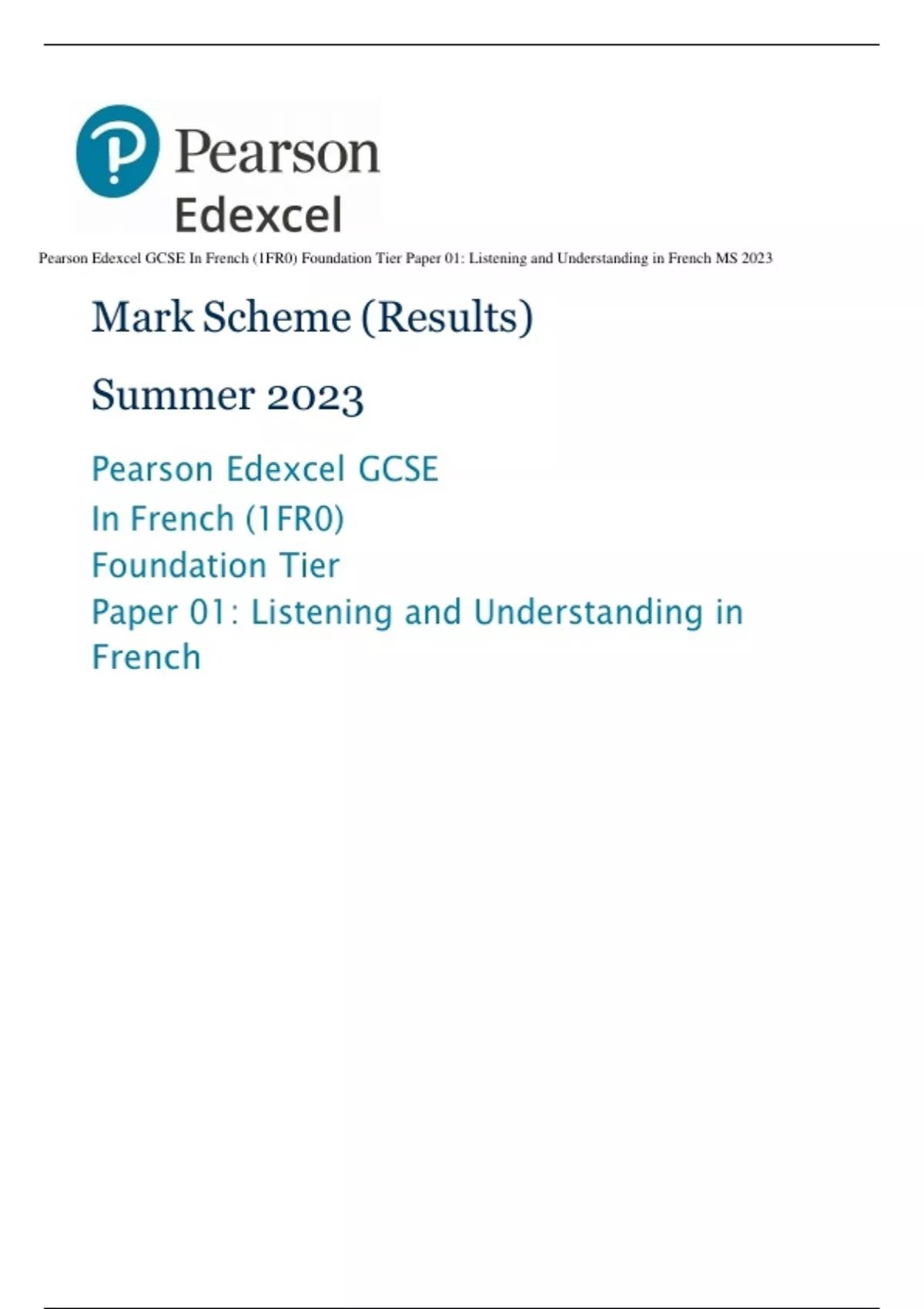 Pearson Edexcel GCSE In French (1FR0) Foundation Tier Paper 01: Listening and Understanding in French MS 2023