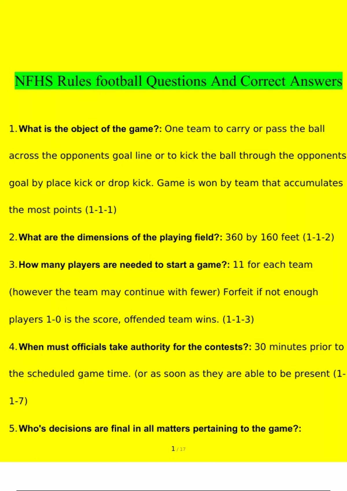 nfhs rules football exam questions with all correc