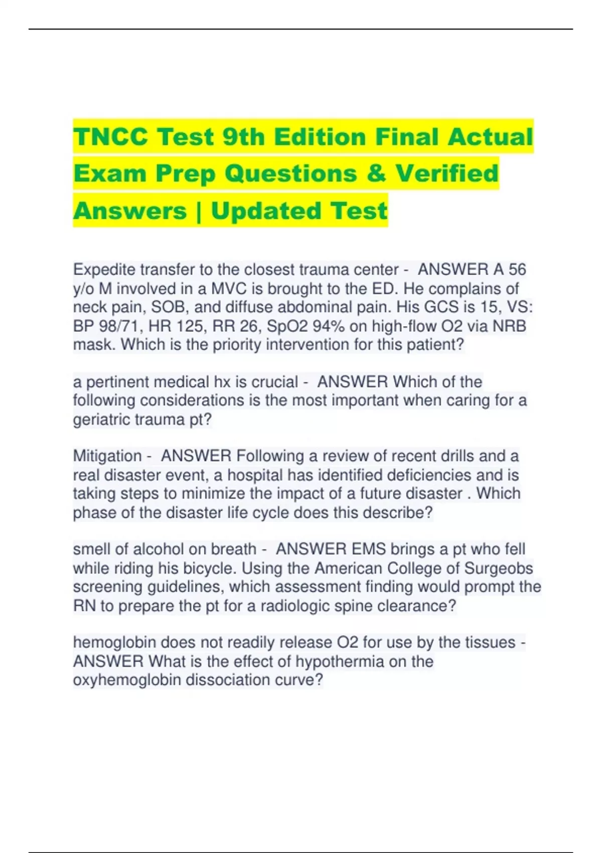 TNCC Test 9th Edition Final Actual Exam Prep Questions & Verified Answers | Updated Test