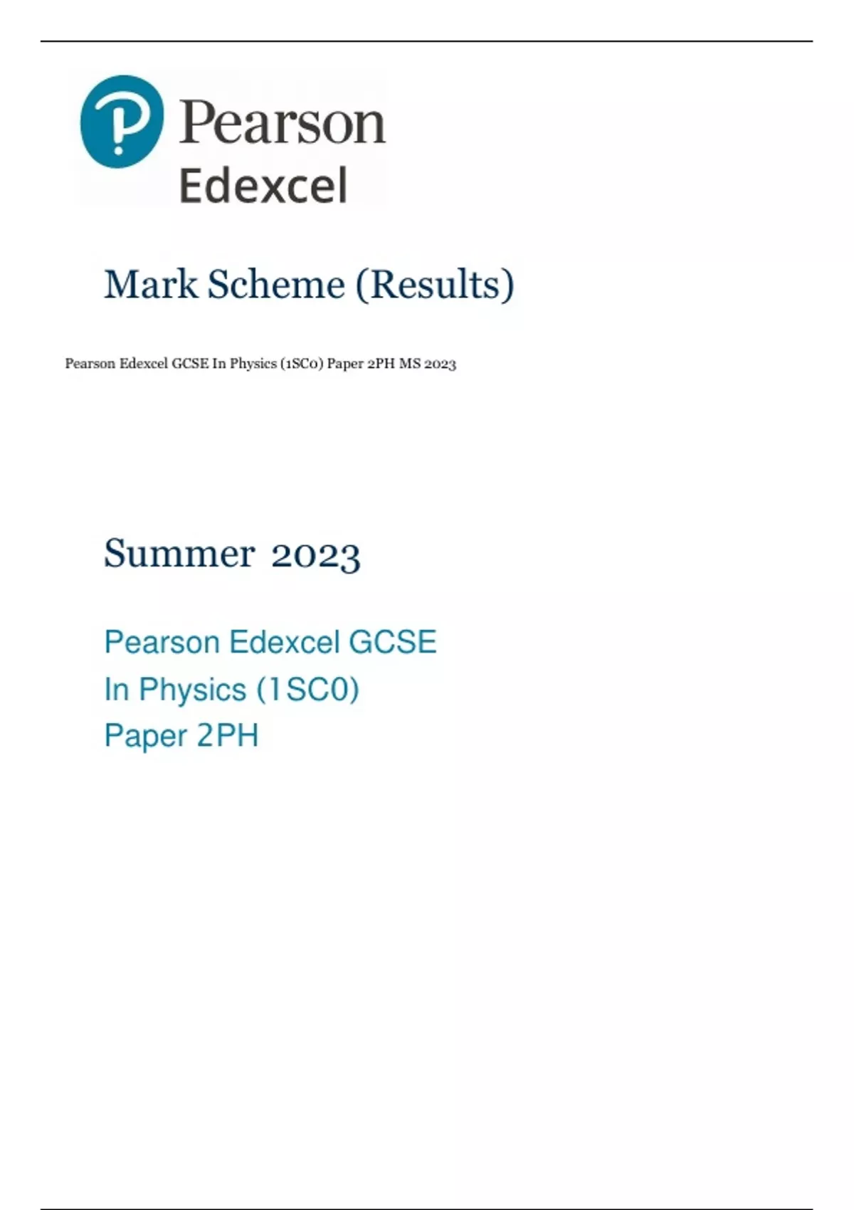 Pearson Edexcel GCSE In Physics (1SC0) Paper 2PH MS 2023