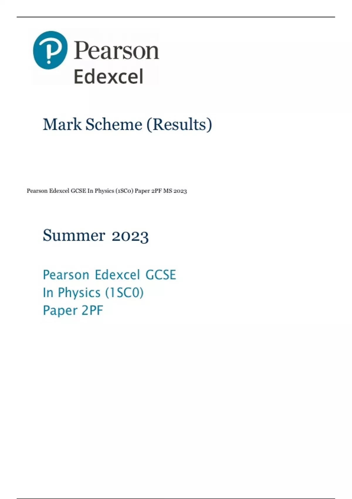 Pearson Edexcel GCSE In Physics (1SC0) Paper 2PF MS 2023