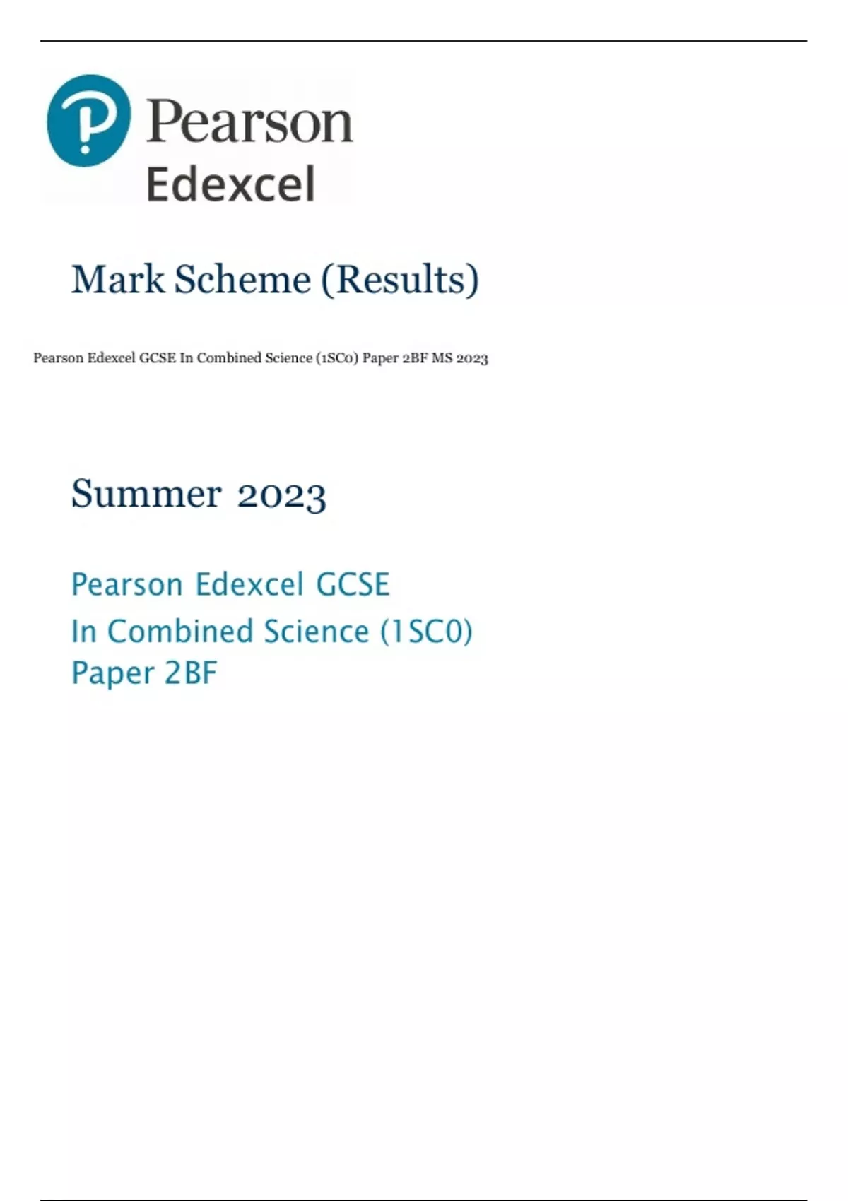 Pearson Edexcel GCSE In Combined Science (1SC0) Paper 2BF MS 2023