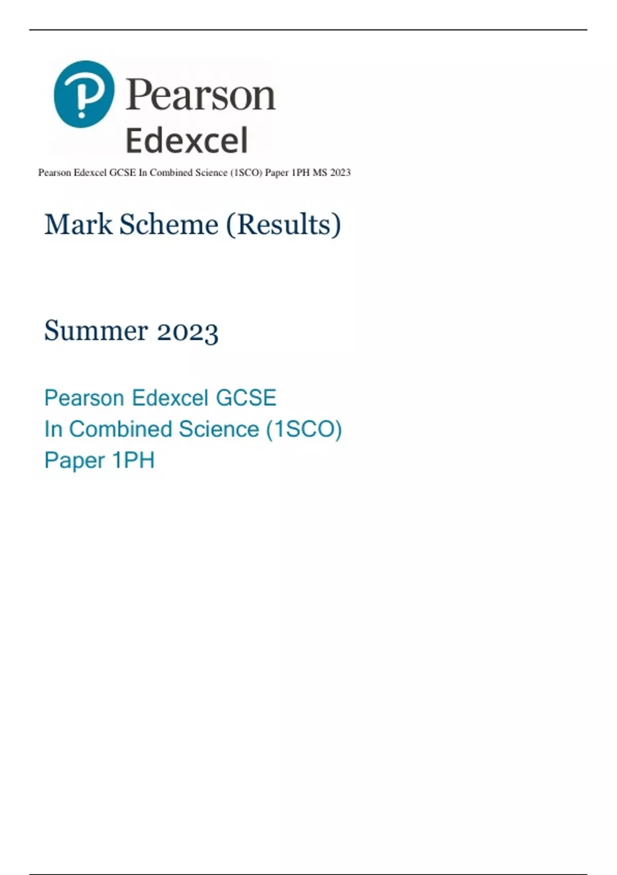 Pearson Edexcel GCSE In Combined Science (1SCO) Paper 1PH MS 2023