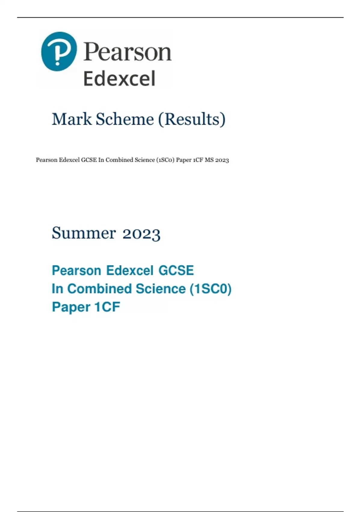 Pearson Edexcel GCSE In Combined Science (1SC0) Paper 1CF MS 2023