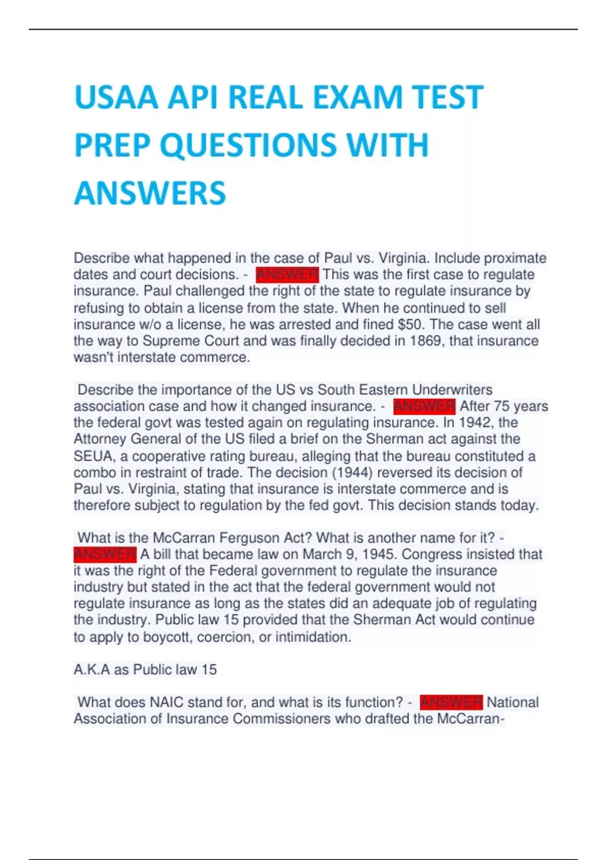 USAA API REAL EXAM TEST PREP QUESTIONS WITH ANSWERS