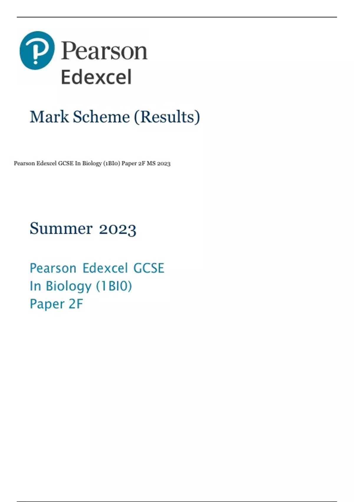 Pearson Edexcel GCSE In Biology (1BI0) Paper 2F MS 2023