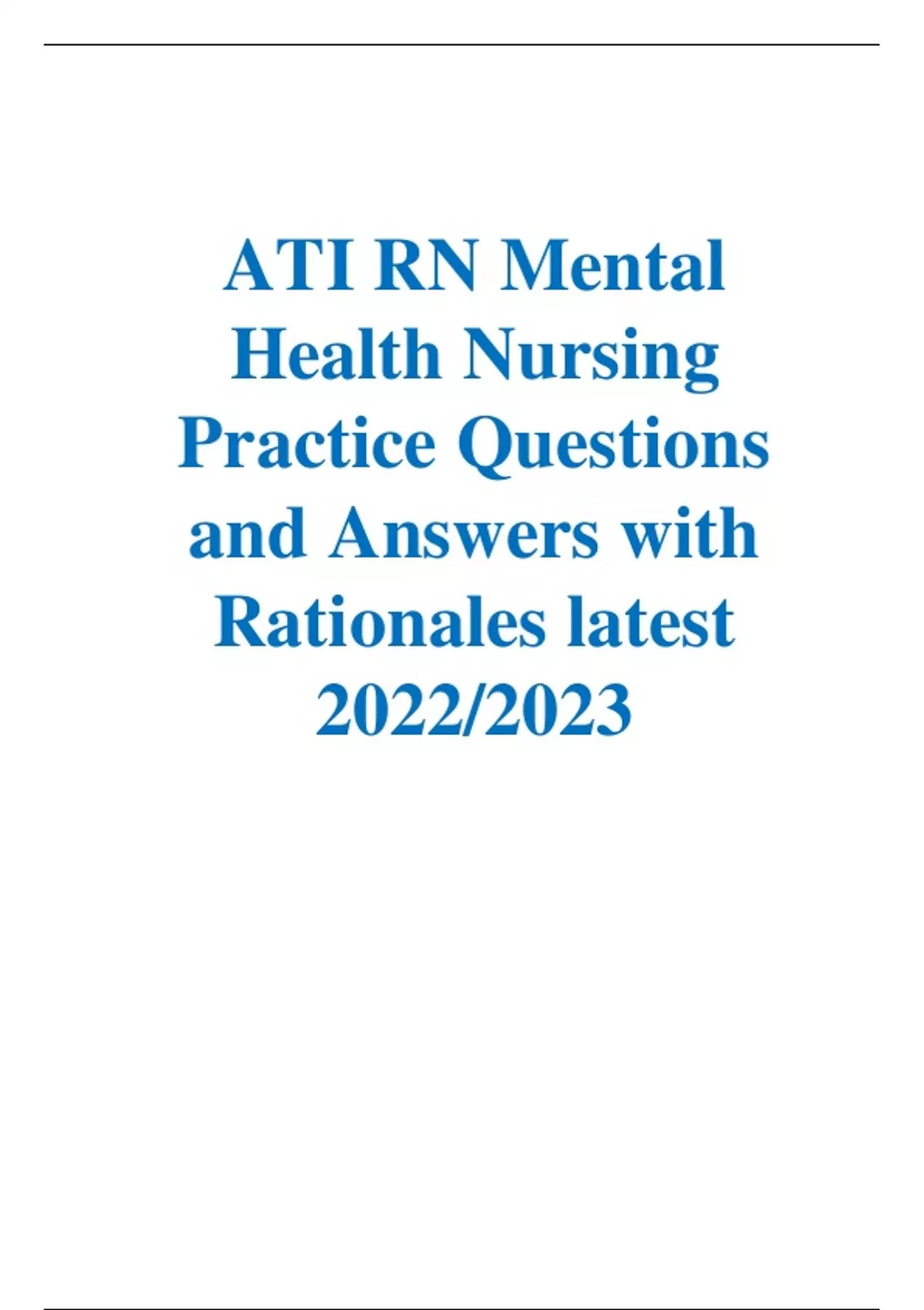 ATI RN Mental Health Nursing Practice Questions and explained Answers latest 2022/2023