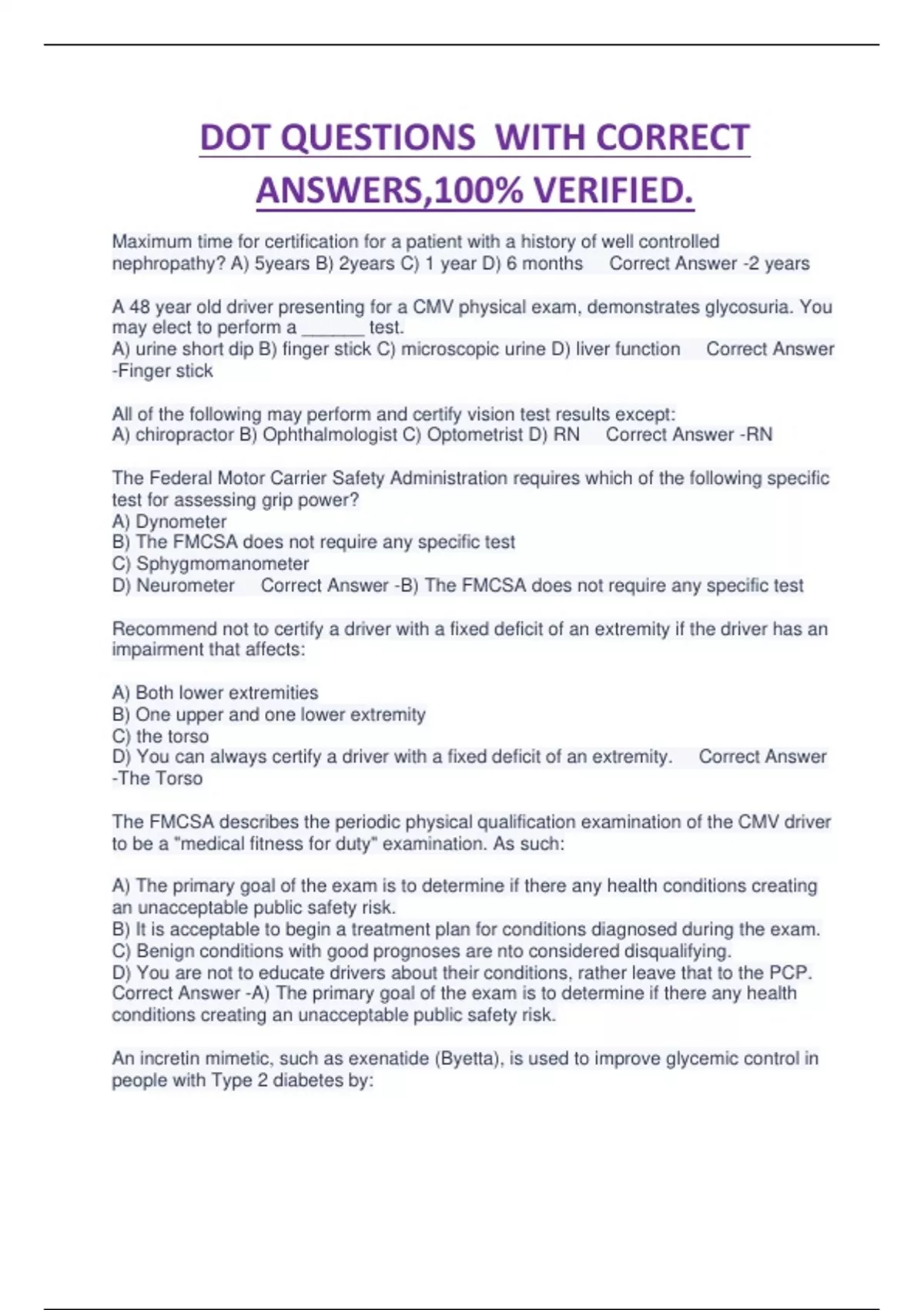 DOT QUESTIONS WITH CORRECT ANSWERS,100% VERIFIED.