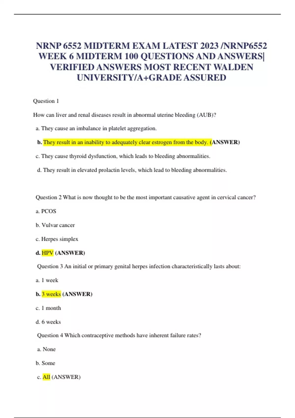 NRNP 6552 MIDTERM EXAM LATEST 2023 /NRNP6552 WEEK 6 MIDTERM 100 QUESTIONS AND ANSWERS| VERIFIED ANSWERS MOST RECENT WALDEN UNIVERSITY/A+GRADE ASSURED